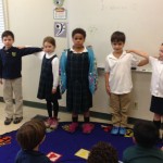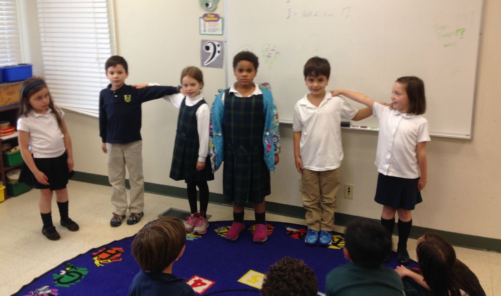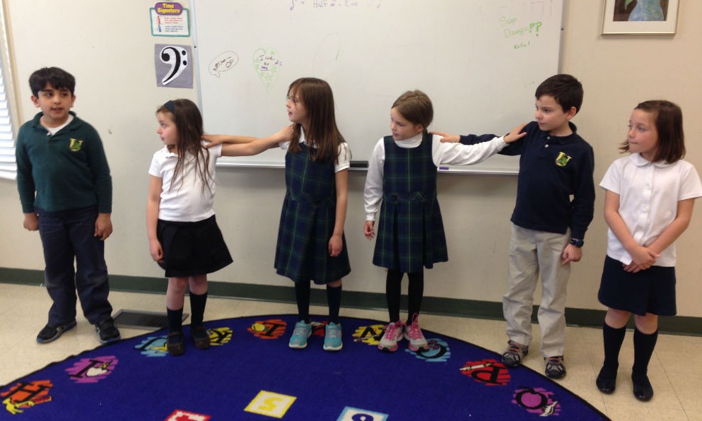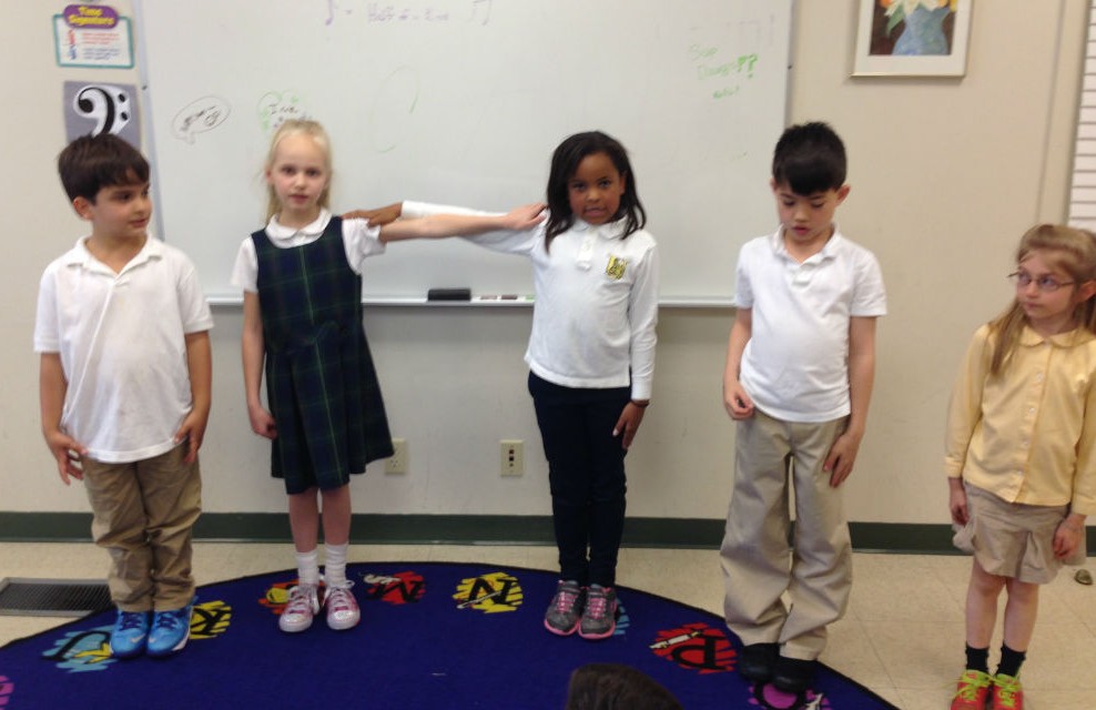Posted by Megan KirkStudents are using many different ways to practice their music theory! Today we used our bodies to create quarter notes and eighth notes. Students had to create measures with their bodies that included four beats of music. It was a great way to use our bodies to help us understand how to create a measure of music!