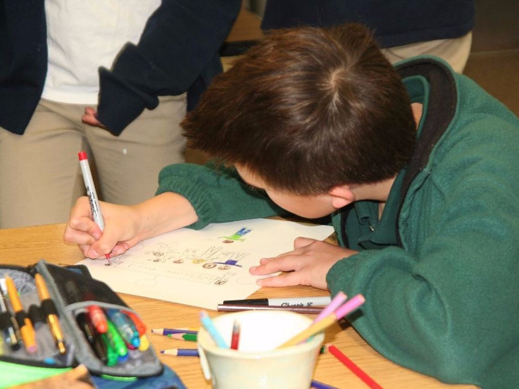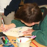 Today, seventh graders worked on their drawings and got started on accompanying artist’s statements. In the spring, we’ll receive drawings from our partner schools in Russia and Jordan, and they’ll receive ours. We’ll also get to meet our partner artists in the spring when we learn about their communities and points of view via videochat.