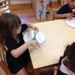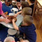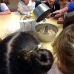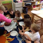On Thursday, the two classes worked together to make Friendship Bread. We cut up the dough and mixed it with the sugar and cinnamon before placing it in the pan. Ms Palm melted some butter and poured it over the whole thing before it was baked by Chef Jessica in the oven for us. What a lovely surprise at snack time on Friday when we were all able to get together and eat our delicious bread. It looked, smelled and tasted great! Even better because we had made it together.