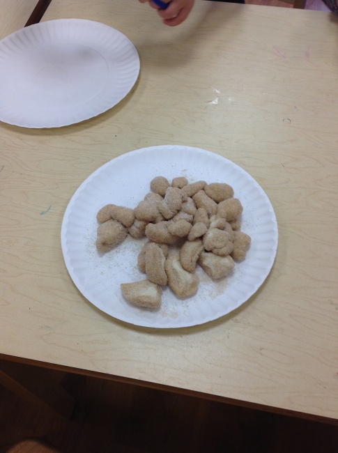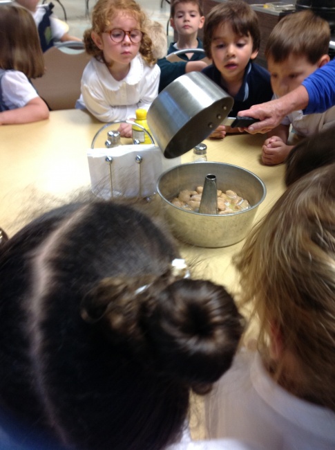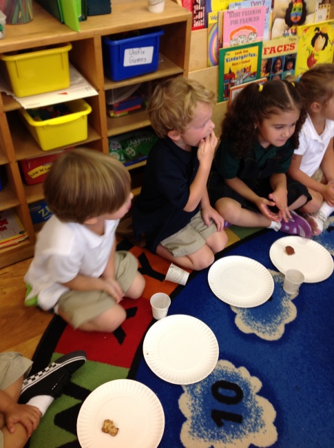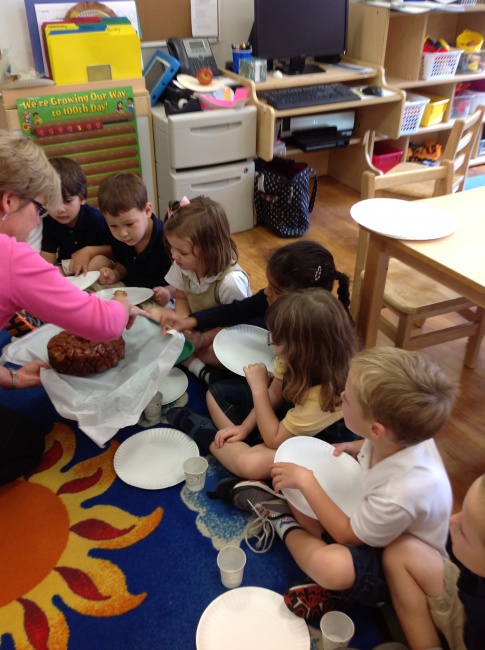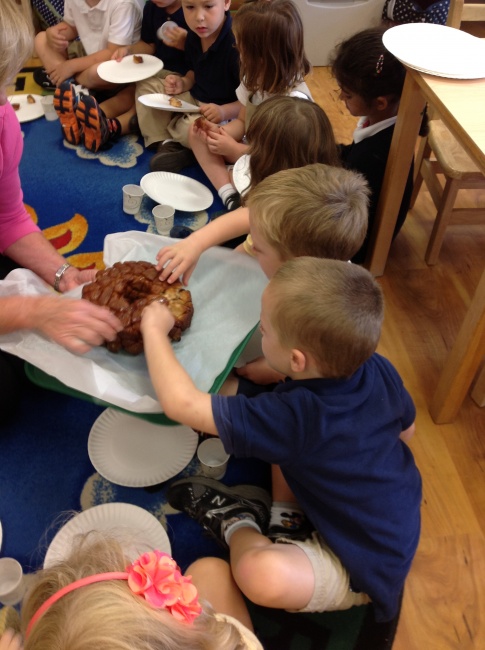 On Thursday, the two classes worked together to make Friendship Bread. We cut up the dough and mixed it with the sugar and cinnamon before placing it in the pan. Ms Palm melted some butter and poured it over the whole thing before it was baked by Chef Jessica in the oven for us. What a lovely surprise at snack time on Friday when we were all able to get together and eat our delicious bread. It looked, smelled and tasted great! Even better because we had made it together.