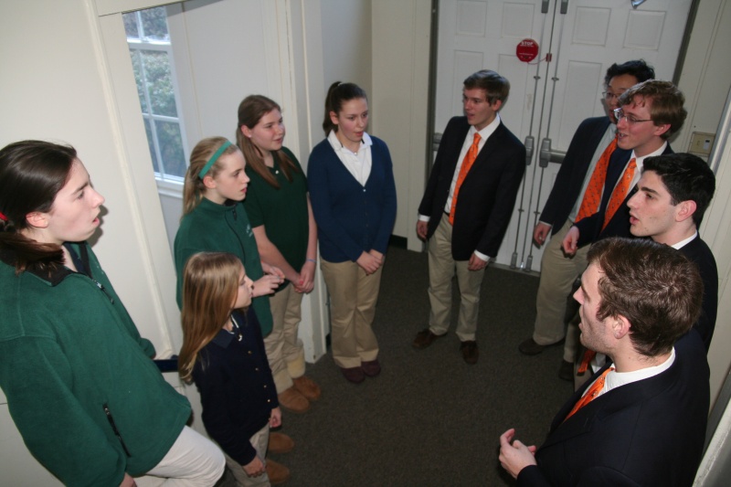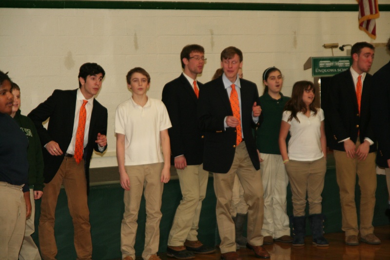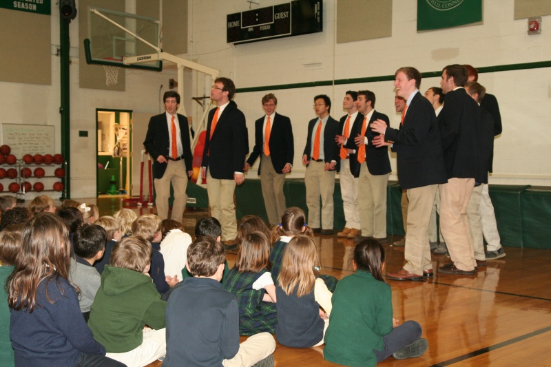 Posted by Megan KirkWe had a very exciting day on Friday with our musical guests The Princeton Footnotes! The visit began with a workshop for our 6th-8th grade chorus members. The Footnotes taught us new warm ups and one of their favorite songs! We also learned some tips and techniques on how to sing in an a capella group. After the workshop, the Footnotes gave a performance to the entire school. Everyone loved the group’s energy and musical talent! Our chorus members even got to join the Footnotes to sing the song they learned! It was a great end to a wonderful experience!