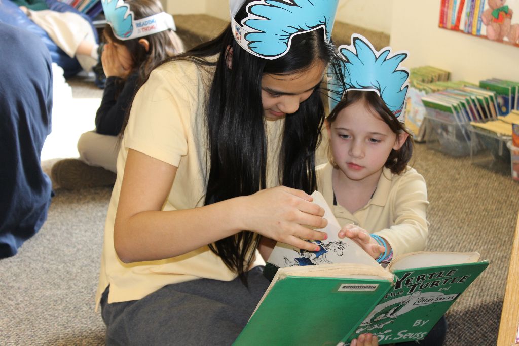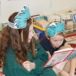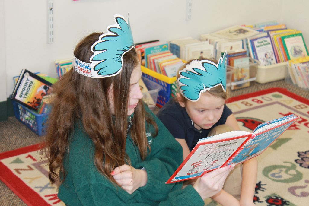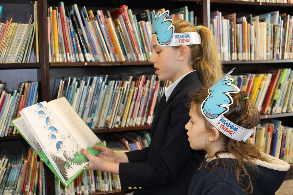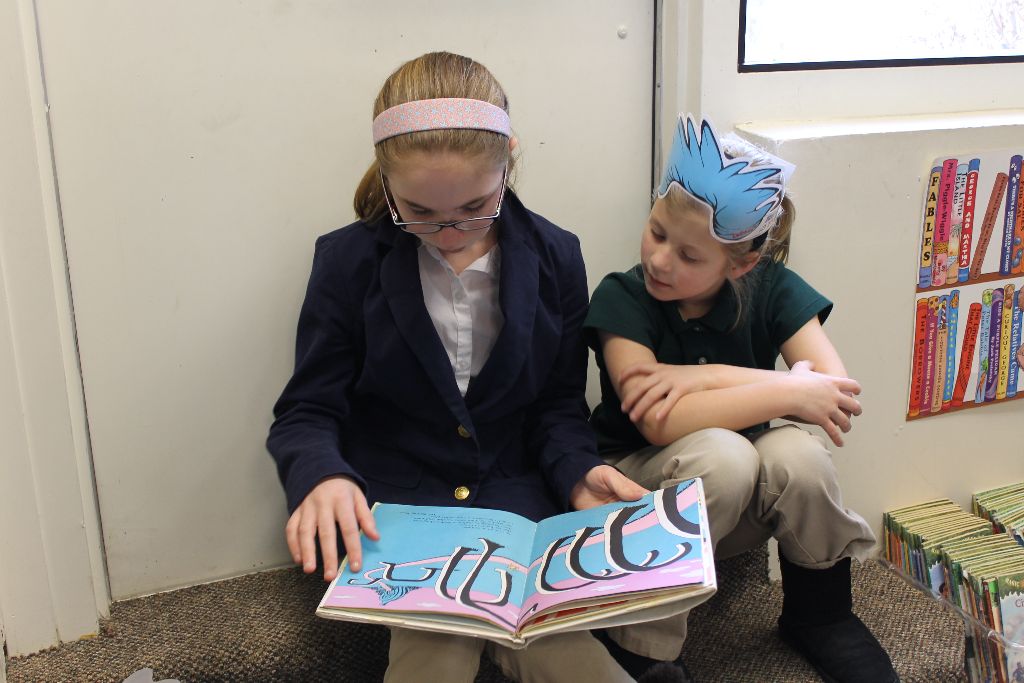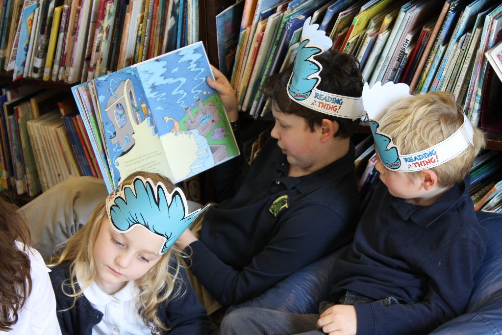 Posted by Tracy HintzStudents from kindergarten, first, sixth and seventh grades gathered in the library last week in observance of Read Across America honoring the literary work of Dr. Seuss. The event activities included a short biography clip about the author, trivia questions and shared reading of Seuss books among Upper and Lower School students. The Unquowa School Library has a large collection of Dr. Seuss books on display for all patrons to enjoy.