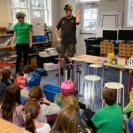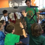 Over the course of an afternoon in the makerspace, Monika, local riders, and a staff member from Danny’s Cycles in Stamford taught fifth graders how to clean and grease bike chains, how to repair a flat tire, about the different types of pedals used, the proper way to fit a helmet and the safety measures needed out on the roads and trails. There was even a station with an assortment of bike parts that the students used to create anything they could imagine. The highlight of this workshop for me was the tire repair competition at the end. Any student who wanted to participate could use what they learned to repair a tire as fast as they could.