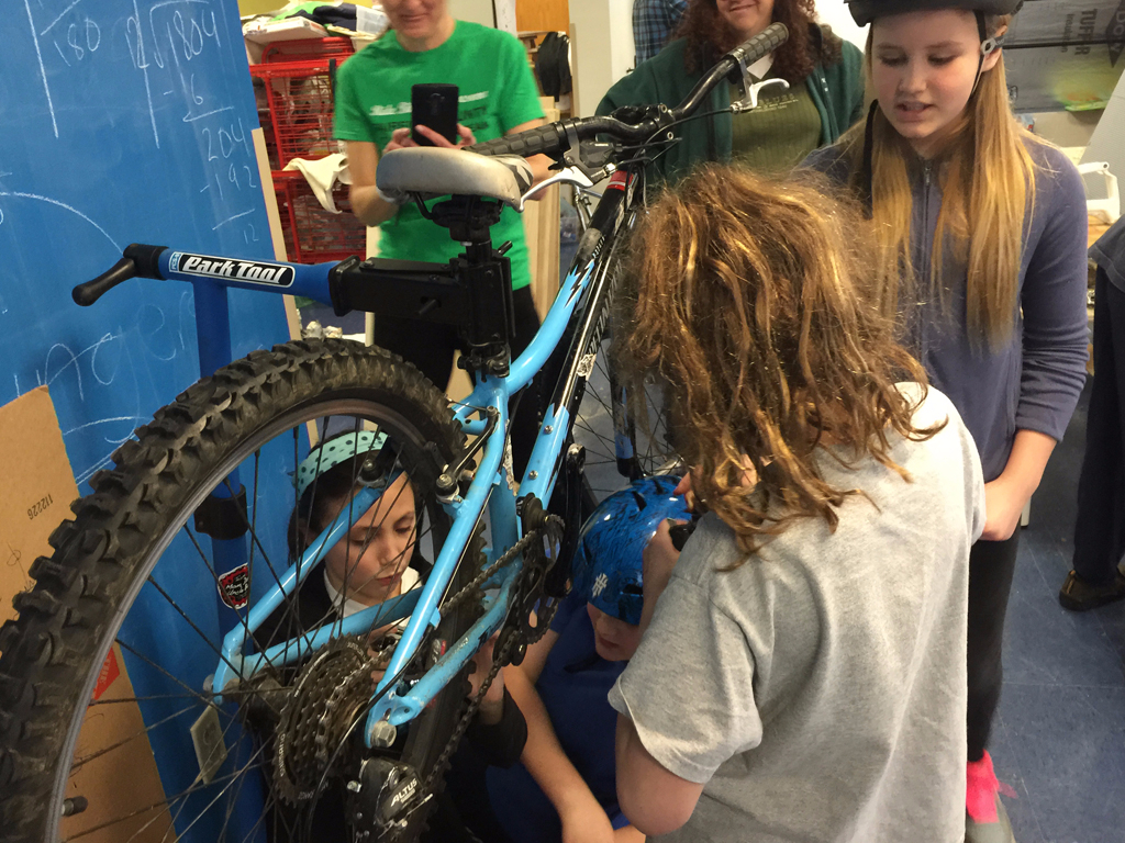 When fifth grade parent Monika Stokes proposed a workshop teaching kids about safety and care for bicycles, it evoked memories of my 10 year-old self imagining that my bike was really a horse and it could take me anywhere: my friends’ houses, the woods in my backyard that I called “The Ranch,” and up and down the highway I created with chalk in my driveway. More than anything, my bike gave me my first taste of freedom. The workshop would provide so much more than I, or any of my childhood friends, knew about bikes. The fifth grade would become mechanics.