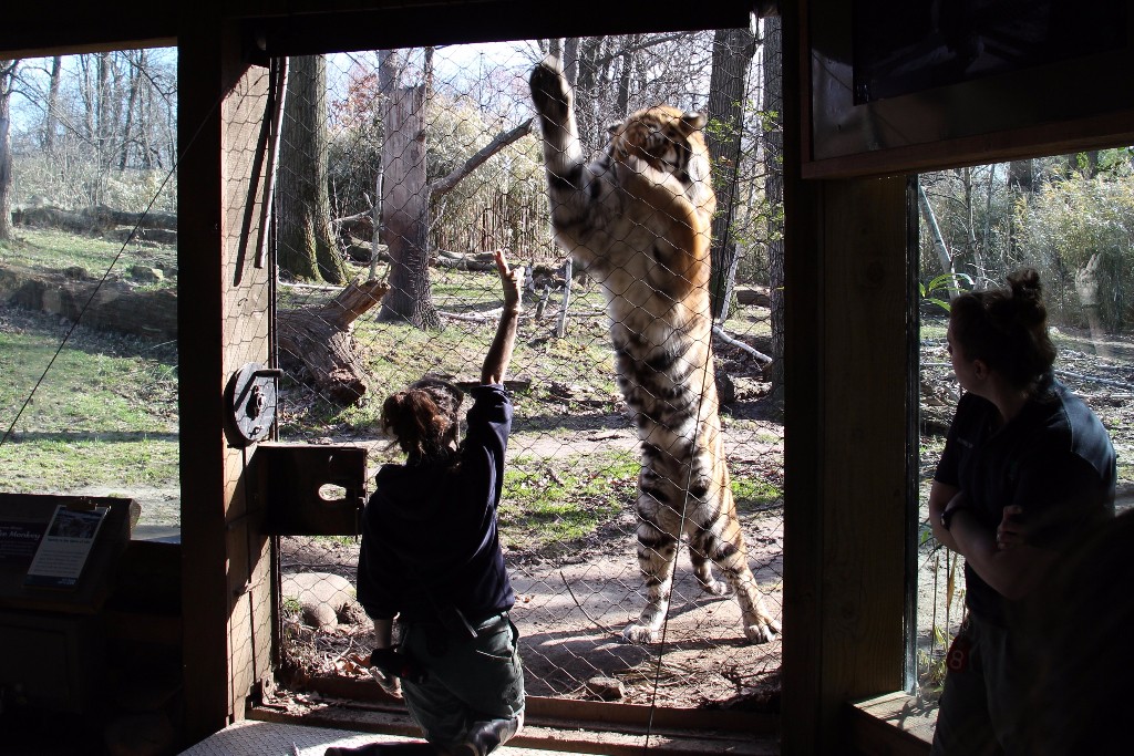 Posted by Craig KnebelThe seventh grade travelled to the Bronx Zoo to wrap up a unit on genetic evolution and natural selection. Students attended a robust presentation on adaptations of predators and prey by zoo naturals. They then took an animal behaviors tour in the zoo focussing again on adaptations and finished with a rare tiger training demonstration by Mr. Knebel’s zookeeper niece who works at the zoo training wild tigers to follow directions. This training helps reduce boredom in the cats, and gives them a red meat treat.