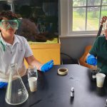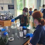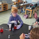 We are diving into the microscopic realm of 7th grade science to gain a better understanding of why things operate and work the way they do. In this lab, students were asked to start thinking about everyday life on a microscopic (small/tiny) scale. To begin, students filled a beaker with some vinegar and food coloring of their choosing. Once they mixed the vinegar and food coloring together, students gently placed an egg into the solution. Students recorded their observations in their notes and we allowed the eggs to soak over the weekend. Once we returned from the weekend, students strained out their eggs from the mixture and made new observations.
