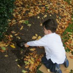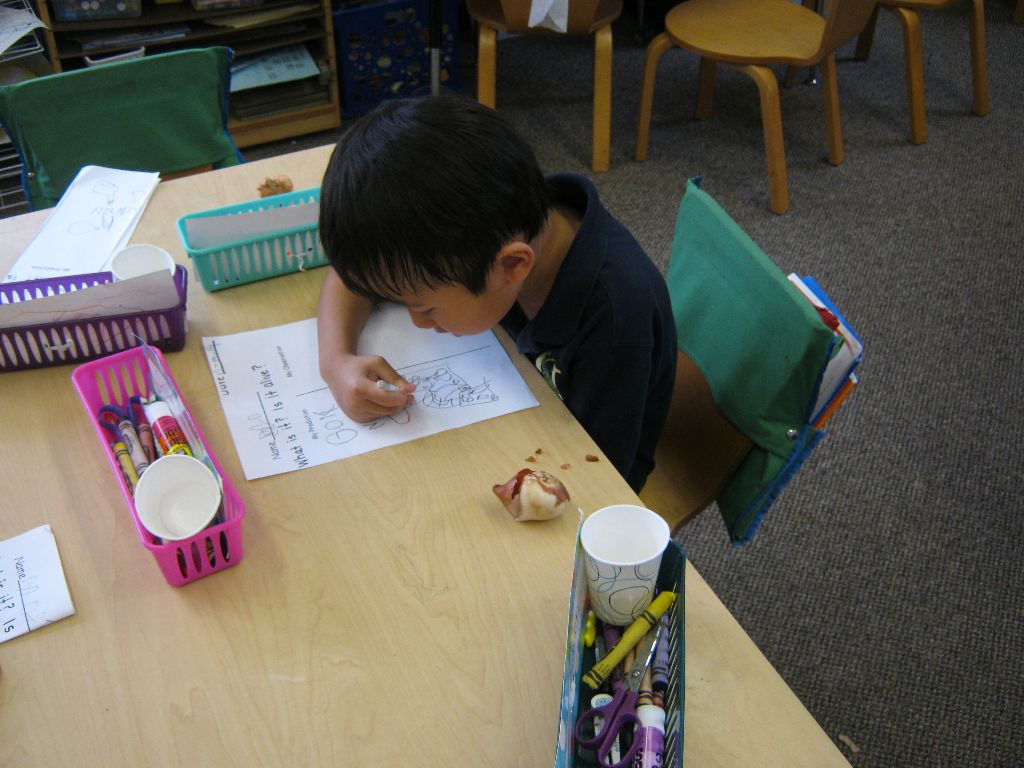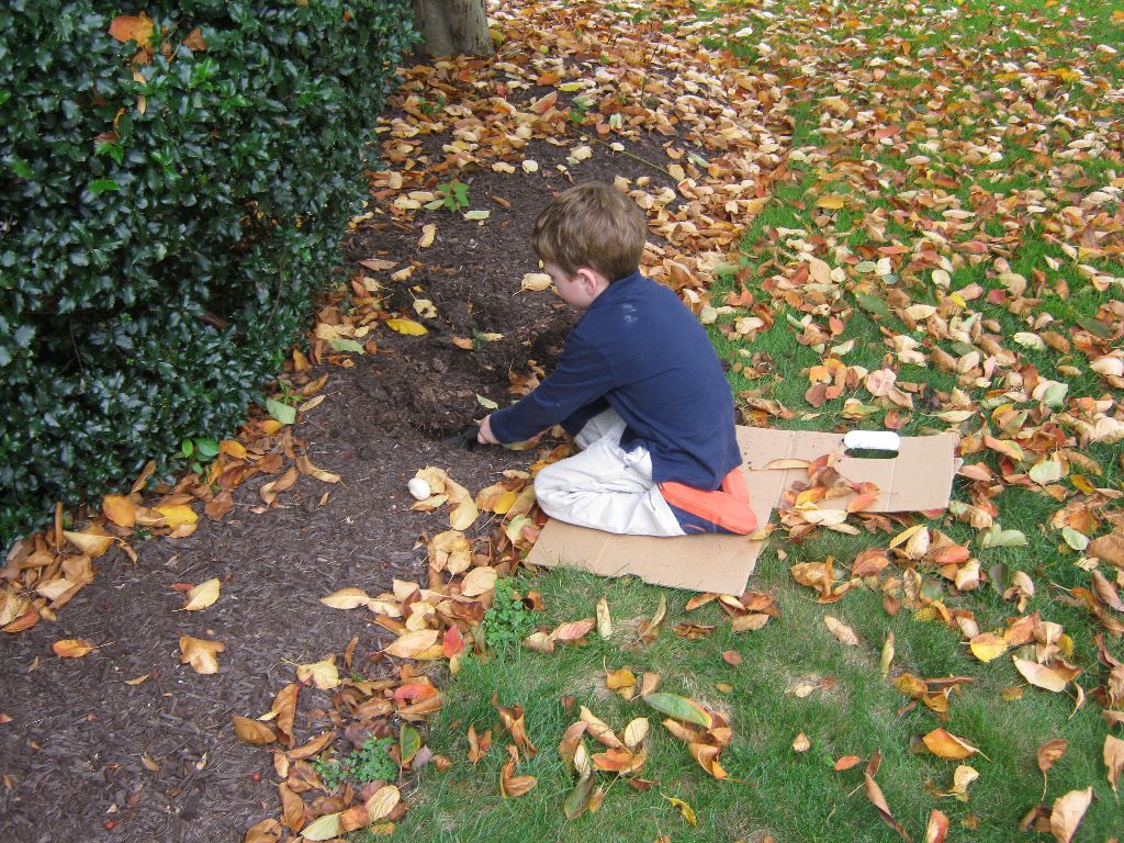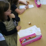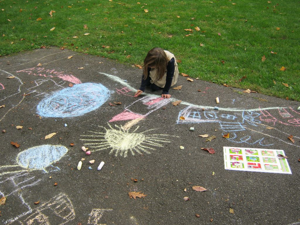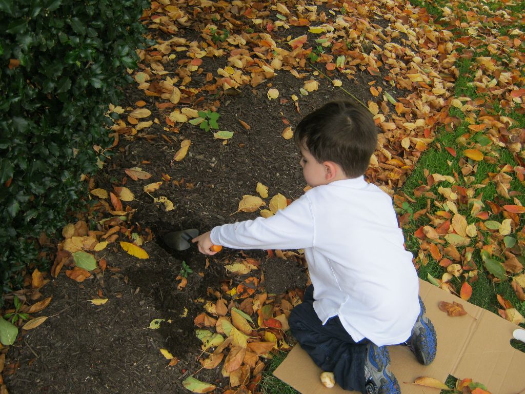 Posted by Faith BarbutoTaking full advantage of the Indian summer temperatures, we set a goal to have as many of our academic lessons outside as possible! First up was a mindful math activity where students were told to put themselves into groups- without talking! Each time the rules of the group changed, like each group must have the same number or nobody could have the same first initial. We counted the members of each group and used that information to make addition sentences like 7+7=14. We stayed out on the stage for writer’s workshop where we used our brand new journals to express our feelings, look for a more indepth blog on this activity coming soon. For social studies we introduced maps of communities and listed the buildings and geographical features that are shown on these maps. Armed with sidewalk chalk we went back outside to create our own community map on the black top. Students enthusiastically added houses, stores, roads and even ponds to create a neighborhood! As part of our study of living and nonliving things, our science investigation focused on bulbs. Each child was given a tulip bulb and asked to predict what it was and if it was alive. After many thoughtful predictions (like garlic) and a heated debate on whether these objects were alive, I finally announced the bulbs’ true identity and explained that they are dormant, not measurably living but waiting for the right circumstances! The last outdoor activity of the day was the kindergarten tradition of planting tulip bulbs along the front walkway. Look out for these heralds of spring to pop up later this year!