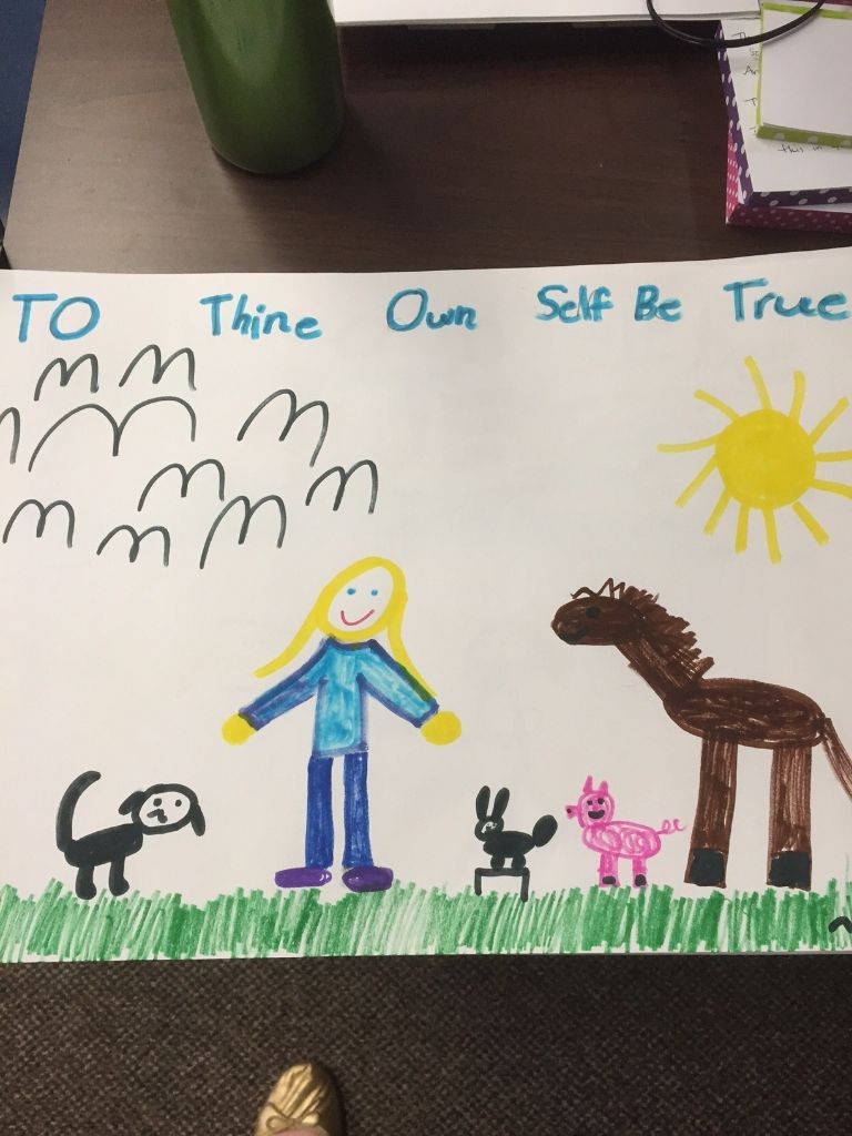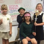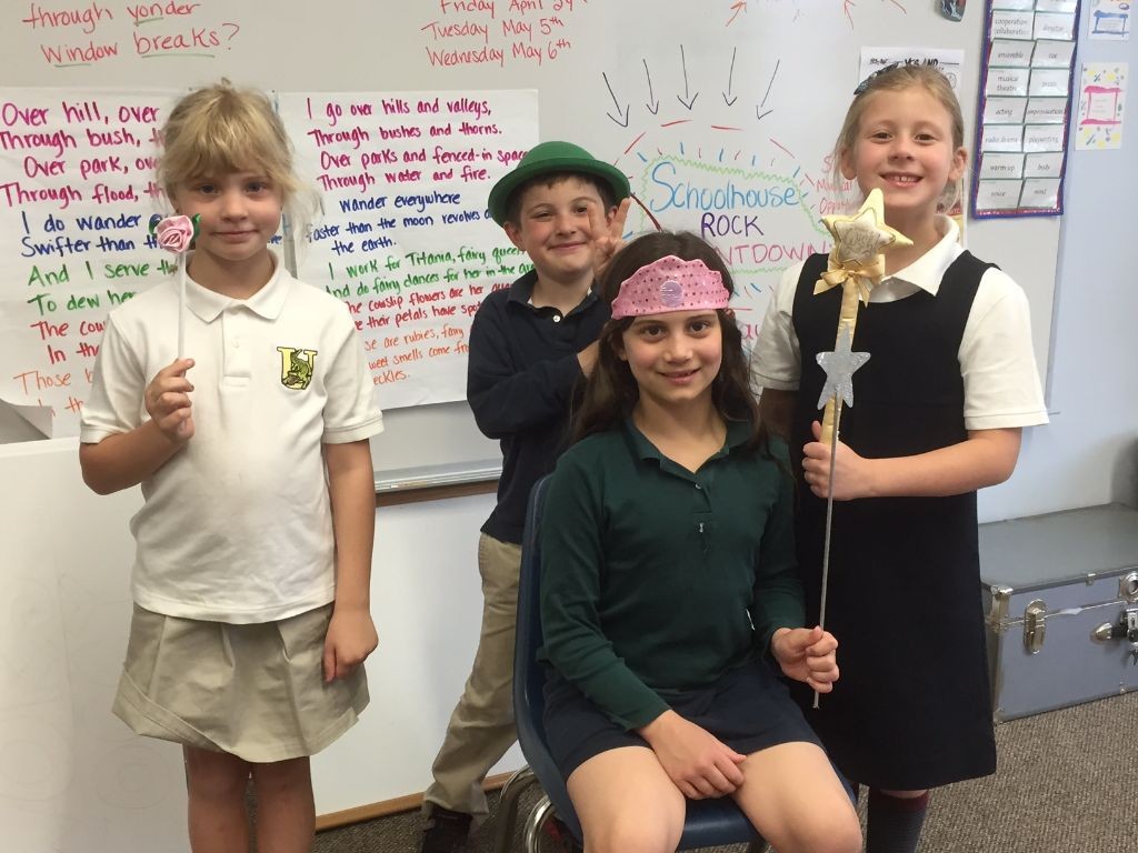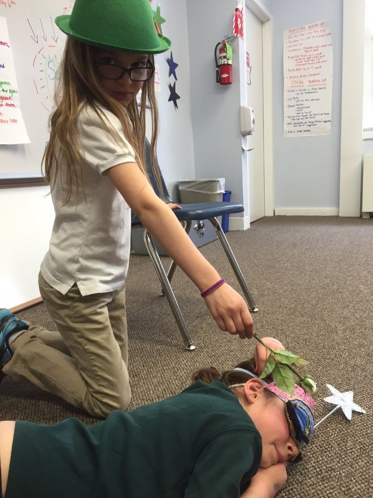 Posted by Alyson CahillIt’s (finally) spring in second grade drama class which means…Shakespeare! Students recently completed a unit on The Bard’s most famous playwright, which included activities on his language and writing style. Students learned that Shakespeare made up many words we use today (such as alligator, eyeball, and luggage) so we made up our own list of words and used them to write short scenes. We also learned about Shakespeare’s use of iambic pentameter and how it almost sounds musical – we stomped our feet to emphasize the beats in the line “But soft! What light through yonder window breaks?” from Romeo and Juliet. Did you know that even “Green Eggs and Ham” uses stressed syllables in its poetry? Finally, students reenacted one of the forest scenes from Midsummer Nights Dream – everyone had turns becoming Puck, the mischievous elf, Titania, the fairy queen, or the fairies themselves.