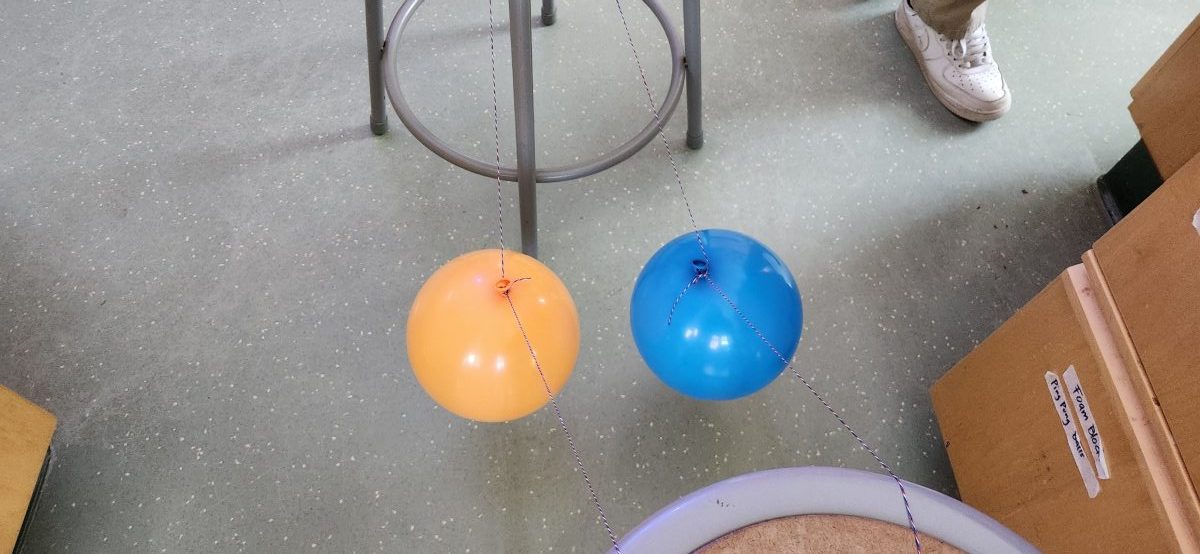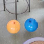 - Moving the blue balloon which was charged by rubbing it closer to the orange balloon which was also charged by rubbing. We can see them repel each other!