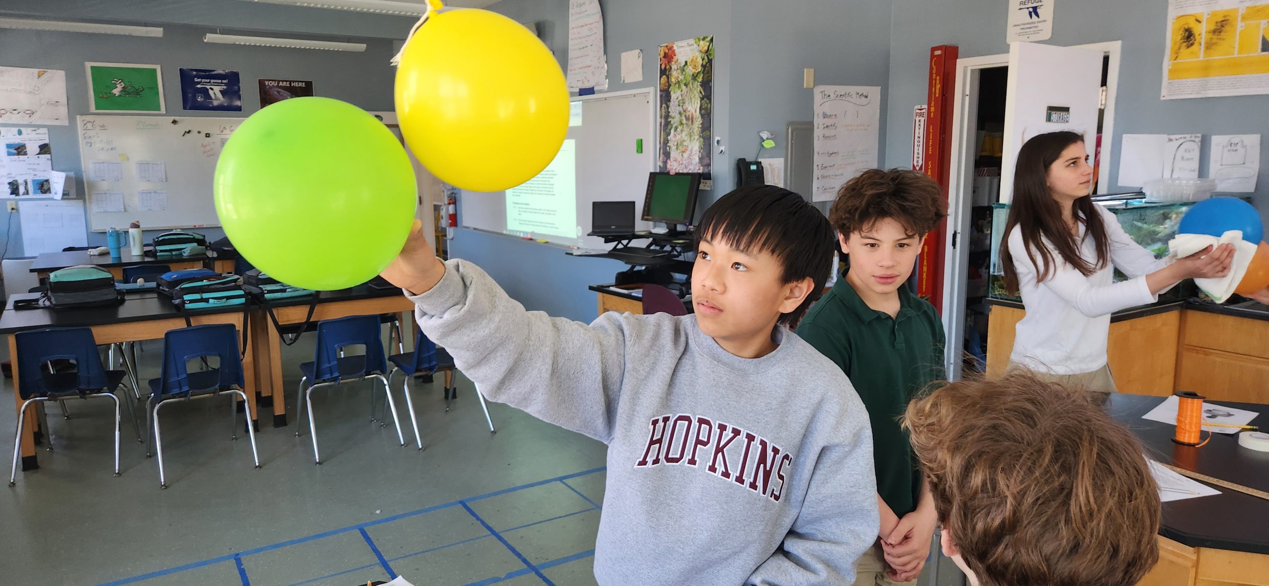 The 8th grade continues their journey through the world of physics and have recently conducted a lab dealing with static electricity! Prior to this lab, our gators learned that electrical charges function in a similar fashion as magnetic poles in which, opposites attract and likes will repel. This means positive and negative charges will be attracted to each other while a negative charge and a negative charge would repel from each other (just like a positive charge and a positive charge would also repel each other, due to being the same charge).