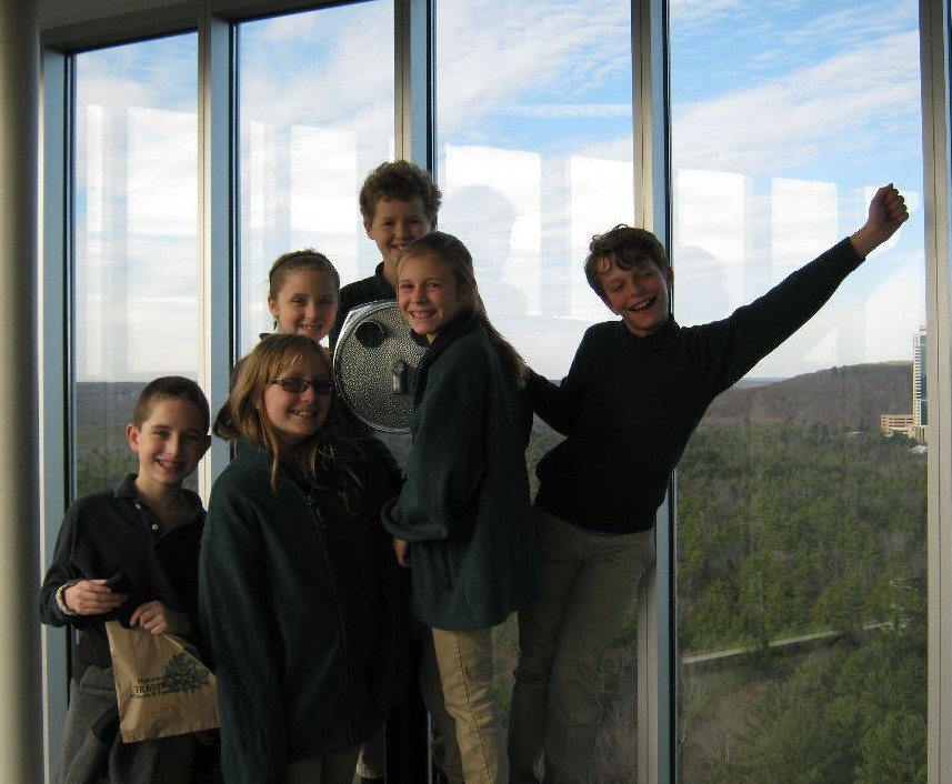 After lunch the students were led by a museum docent through a replica of a Pequot village in the summer time. Along the paths were scenes of a day in the life of the Pequot people. From children playing to women preparing deer after a hunt, the students were amazed at the authenticity of the village and had so many questions. They were truly fascinated by the day to day life and struggles of the Pequot people. Hands were raised throughout the tour to answer and ask questions. The day ended with a ride in the elevator to the tower. Here students were treated to an amazing view overlooking the reservation.