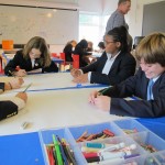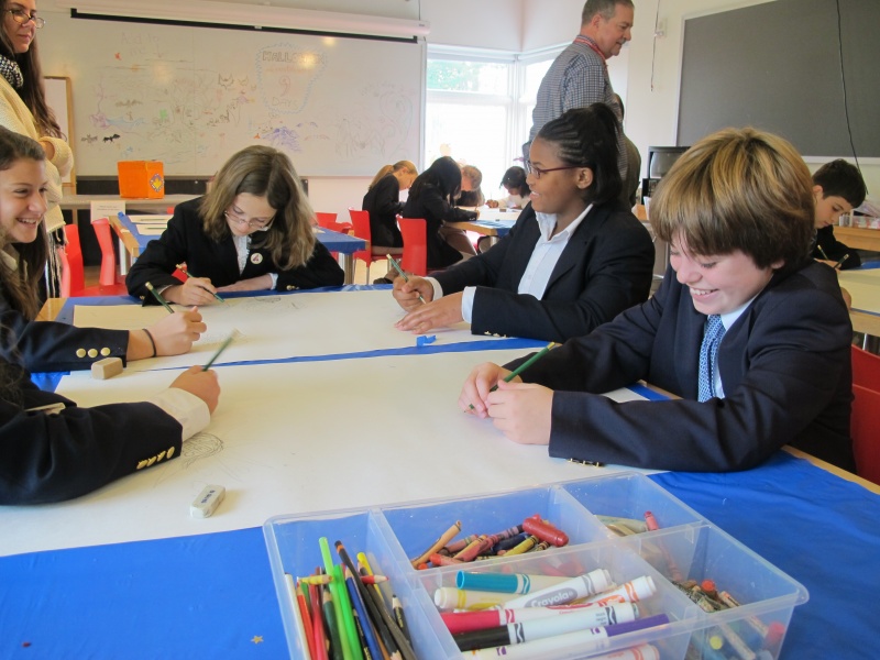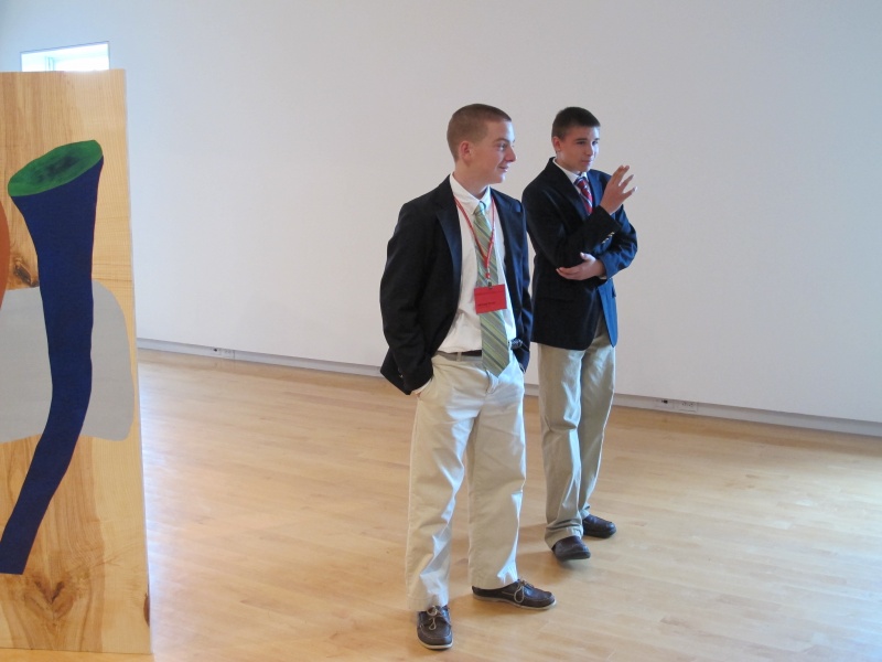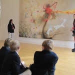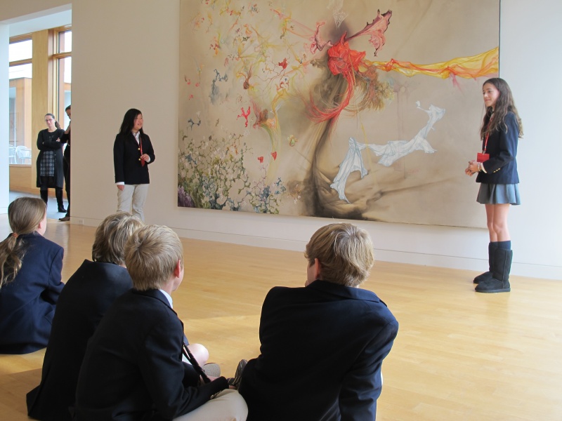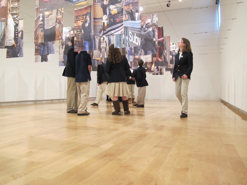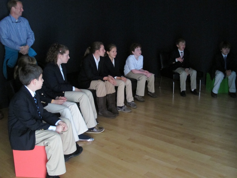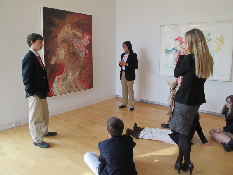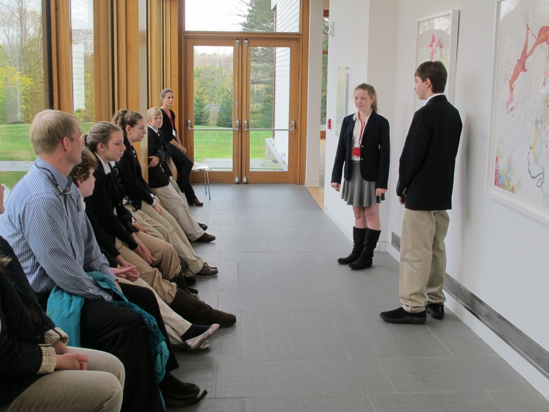 Posted by Krissy PondenHalf of the students in eighth grade led the sixth, seventh, and remaining eighth graders on tours of The Aldrich Contemporary Art Museum after completing their four weeks of docent training in October. The Student Docents asked questions of their peers while viewing the museum’s current exhibitions including Chelpa Ferro, Kate Eric, Jessica Stockholder, Type A, and Judi Werthein. Additionally, the students worked on a group hands-on activity in the education center. As the current theme of the museum is related to collaboration, the students were asked to work on a group piece by each contributing to each other’s drawings. The tours were once again a great success, and it is always a pleasure to be involved in one of the Student Docent’s conversations about the art. We are looking forward to the Spring, when the other eighth graders will train to be docents and give tours of the museum to the fourth and fifth graders.