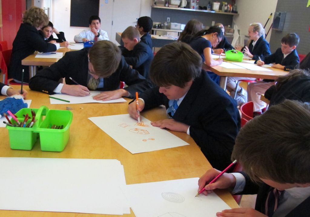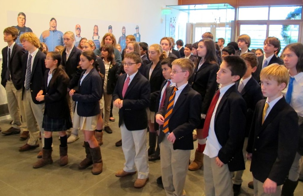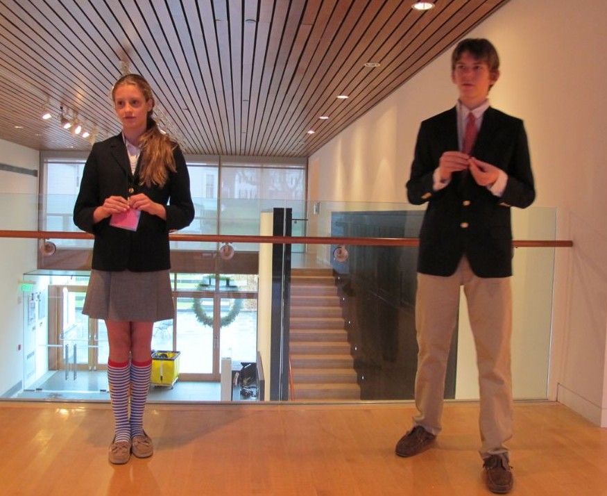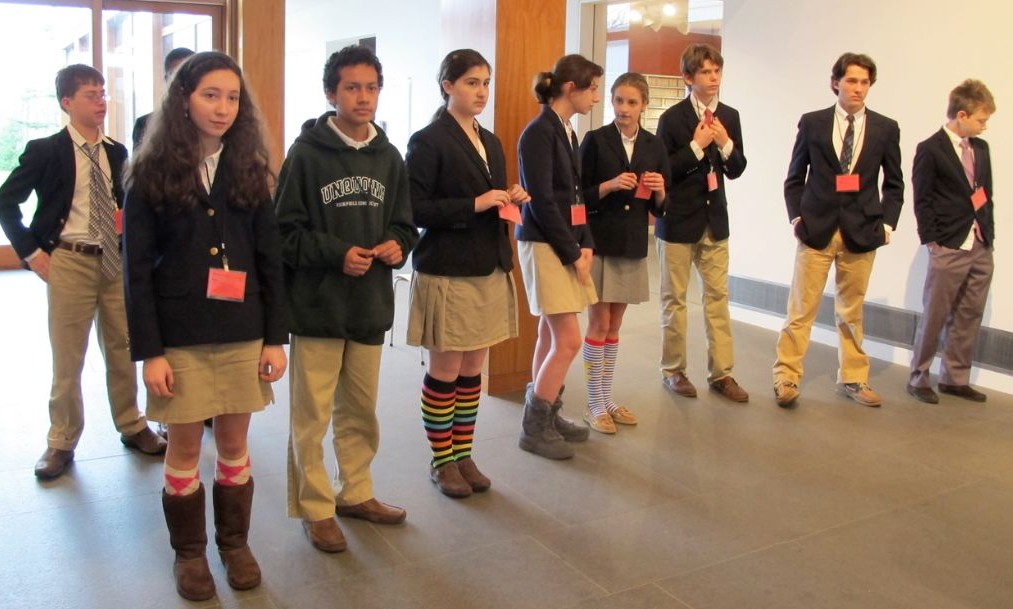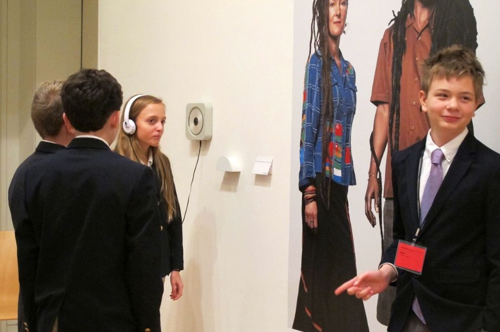 Posted by Krissy PondenAfter four weeks of training to be docents, on Friday, December 6, students in 8A led tours of The Aldrich Contemporary Art Museum to their peers in grades 6, 7, and 8. The docents asked a series of open-ended questions to guide the students to explore their own opinions of the artwork and discover the possible meanings behind the artists’ intentions. Starting with an investigative line of questioning such as, “What do you see?” the docents elicited conversation that addressed the overall theme of the current exhibition, Music. Installations as varied as Sol LeWitt’s The Music Collection and Martin Creed’s Scales offered a platform for discussion of how sound influences art and is incorporated into our everyday lives. In addition, the students participated in a drawing activity that asked them to listen to different musical compositions and sketch what they heard. This further helped solidify the connection between art and music and expanded the students’ perceptions of how artists find inspiration for their work. It was a wonderful day and a great example of Unquowa’s partnership with The Aldrich enriching the lives of our students. We are looking forward to the spring, when students in 8B will complete their training to be docents and lead tours for the 4th and 5th graders.