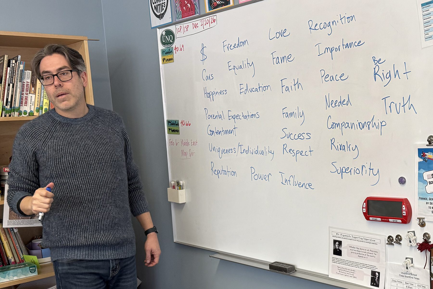 Posted by Eric SnowIt was a day for tackling big questions! At the inaugural session with Dr. Matthew Croasmun of Yale Center for Faith and Culture, our 8th Graders began their months-long inquiry into… themselves. The Life Worth Living @ Unquowa program, developed in partnership by Dr. Croasmun, Mr. Snow, and Ms. Warshaw, introduces students to the practice of intentional self-reflection as they gear up for their next steps in high school and beyond. Over the course of the remainder of the school year, students will consider what they and others desire most in life, what is worth wanting, and how those “wants” might shape responsibility to self and community.