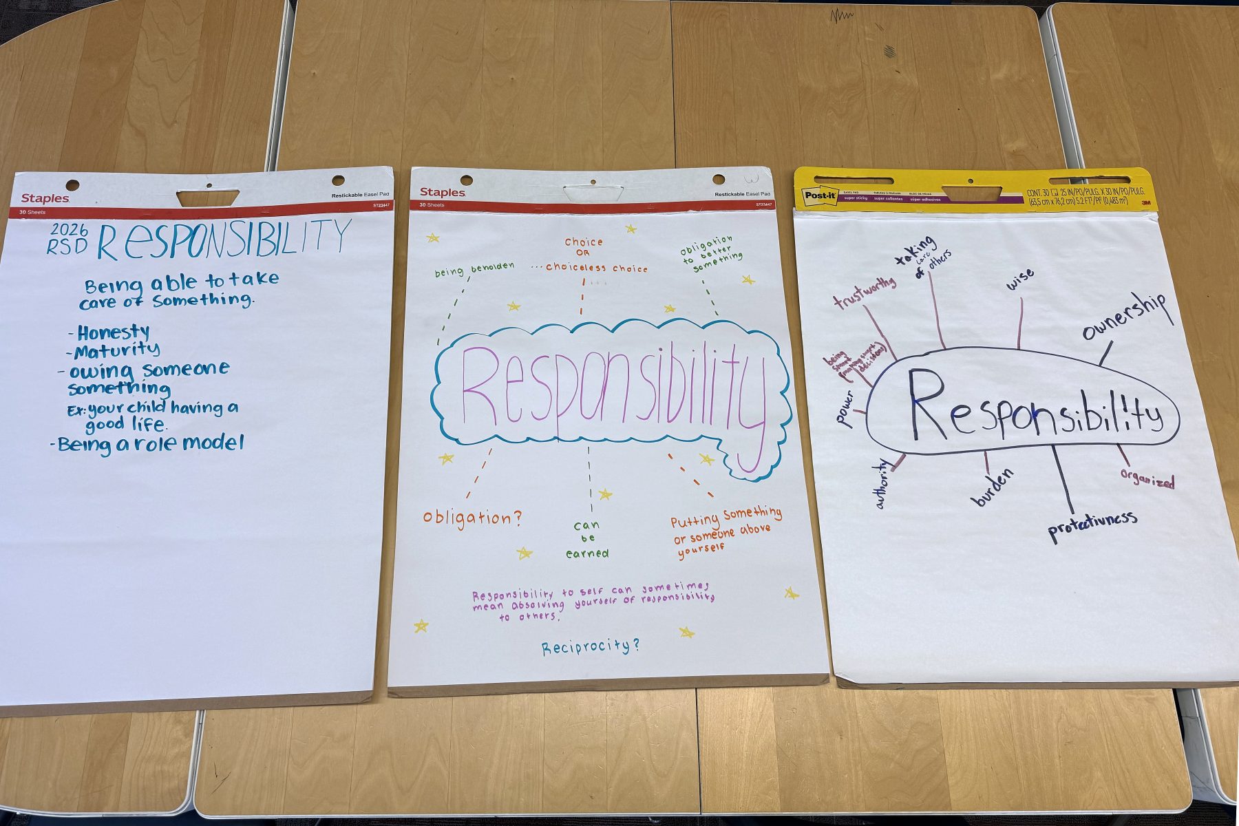 This first session tasks students with dreaming big; first about their own futures – what they believe they want for themselves and what seems to be important to them. We then moved to interrogate those desires further: digging into the “why” behind those wants. After that, we touched on responsibility – it’s definition and how it impacts our decisions.