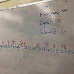 During the weeks of this unit, one could find sixth graders around the Humanities rooms counting syllables on their fingers, making sounds that sounded like beatboxing snakes, and drawing funny symbols (see the image at the top!) above all sorts of complex words. The goal was to break down words, by sound (rather than letter), to notice commonalities and differences between various consonant sounds.