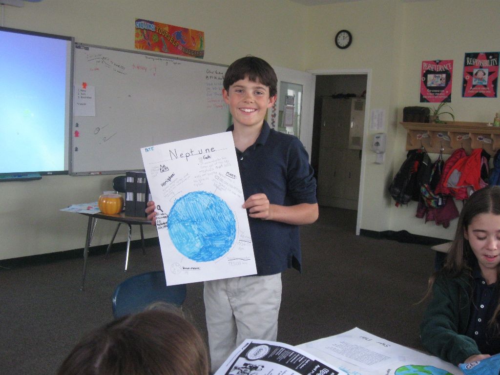 Posted by Mary FaulknerStudents in fifth grade science just completed a unit on Earth and Space. Through investigations the students explored the reason for seasons and the phases of the moons, whats out there besides planets and moons and about different types of galaxies. Instead of simply reading about each planet, the sun, asteroids, comets and moons, each student was assigned a heavenly body to investigate and present to their classmates. Then posters and amazing illustrations were constructed by each student to use as they presented their findings. The process was enjoyed by all and students learned a lot from their peers!