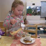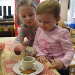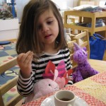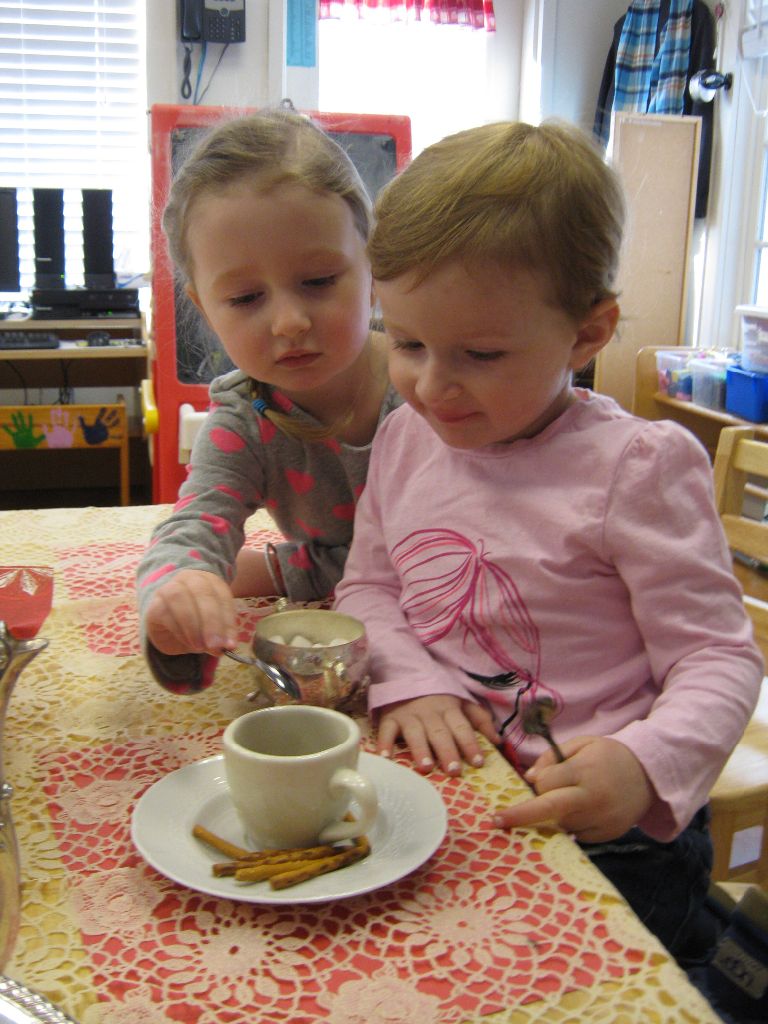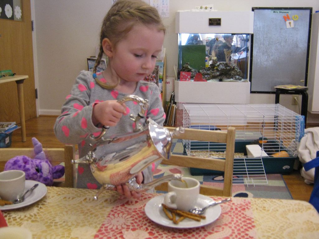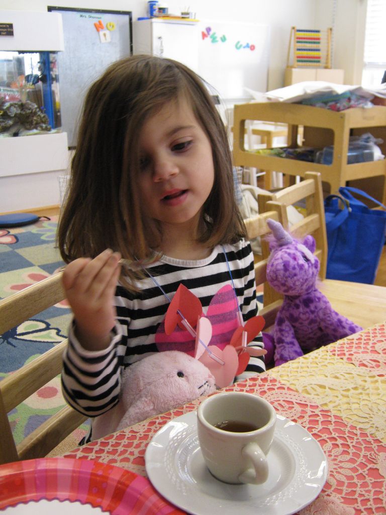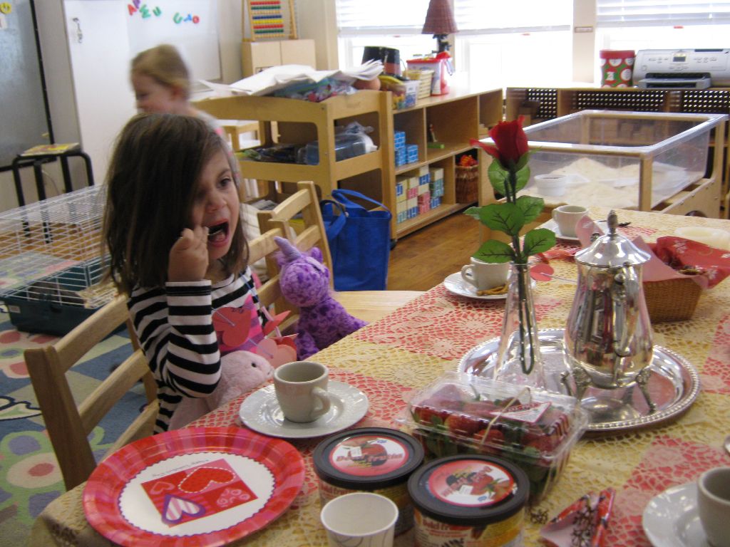 Posted by Janice ShannonEach year around the middle of February we have a tea party with our favorite stuffed animals to celebrate all the comfort that we get from our good friends. We serve nice warm tea in silver pots, drink from china cups while trying to keep our pinky finger straight up and serve delicious small sandwiches. We also dip strawberries, pretzels and apples in smooth chocolate to enjoy with our families when we get home. A lovely day is enjoyed by all.