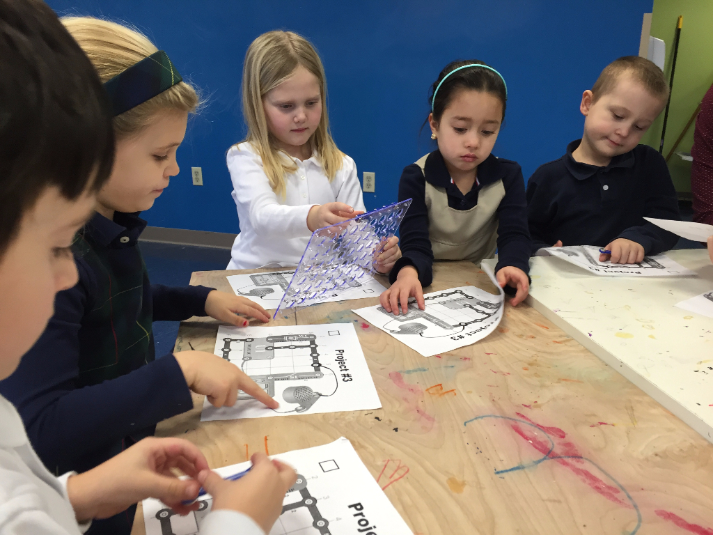 Posted by Faith Barbuto“I want to do the hardest part!” Not exactly what you would expect to hear from a child but that is just what he said. Everyone in the class was eager to tackle a new circuit model. After studying the schematic, we gathered the necessary parts. We all worked together to put the pieces in order and see what the electricity in our new circuit powered! So far we have powered lights, fans and even whistles. The kindergarteners are becoming real expert circuit builders and are ready to take on our next big project!