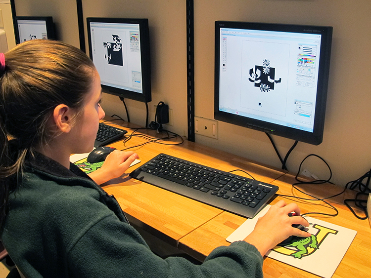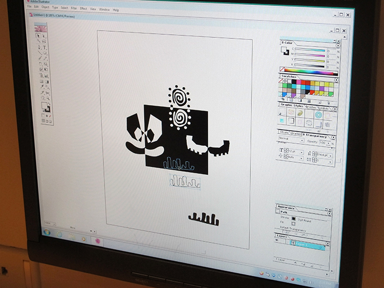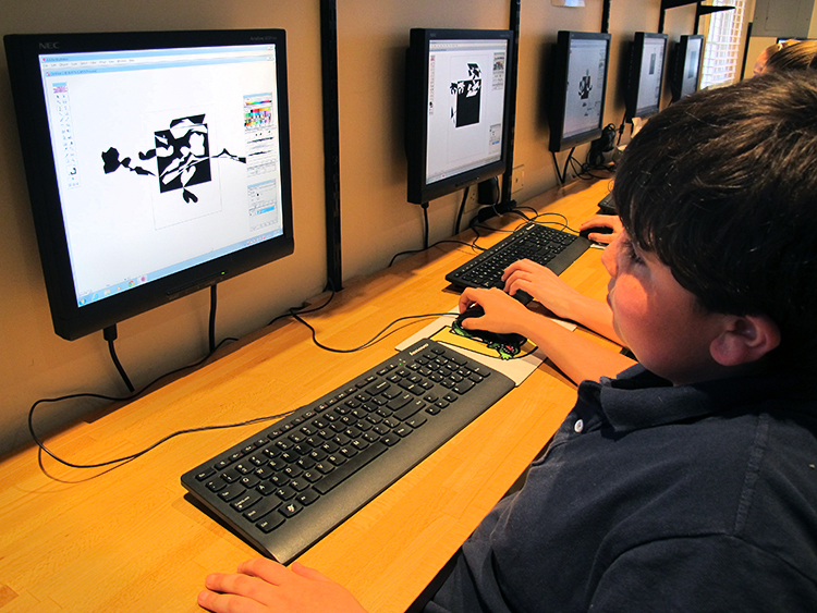 Posted by Krissy PondenSixth graders have been studying the Japanese design concept of notan, which is loosely translated as “light-dark harmony.” In notan, designers are concerned with the interactions between positive and negative space and achieving an overall feeling of harmony within an image. Starting with a black rectangle, the students used Adobe Illustrator to cut out pieces and then place them outside the shape as if they had exploded from the middle. The designs had to be harmonious and individual shapes within the image had to be symmetrical. What a fun graphic design concept to explore on the computers!