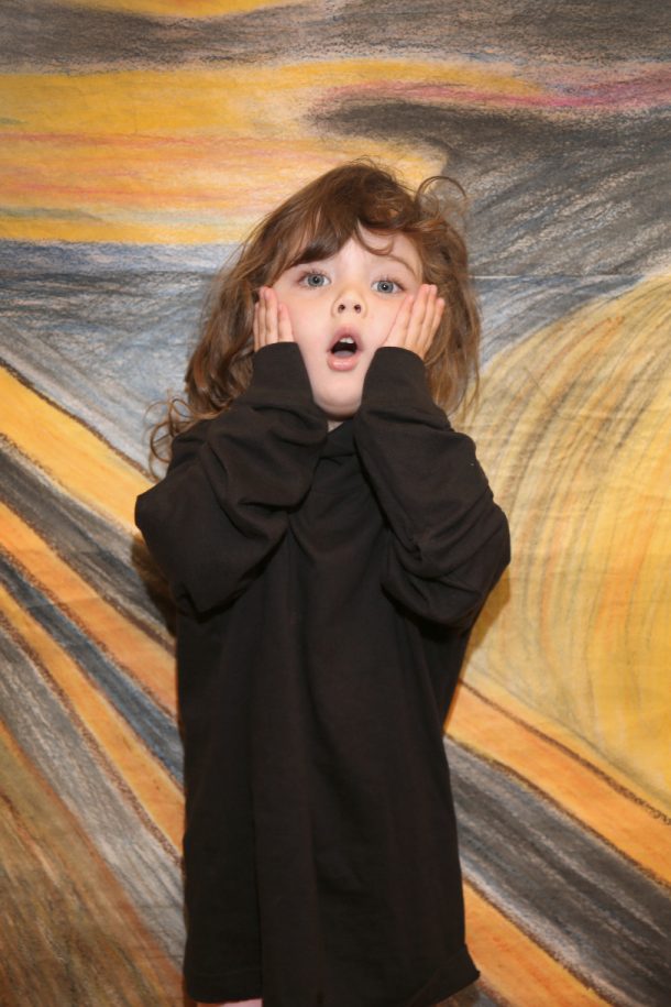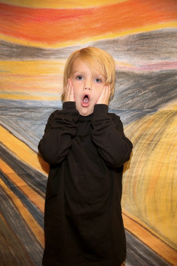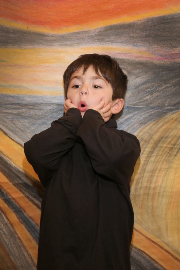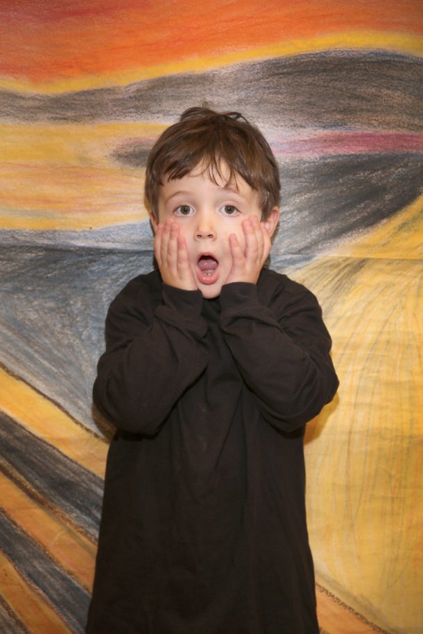 Posted by Janice ShannonDid you know that a long time ago an artist named Edvard Munch painted “The Scream?” Well, the PreK-3 class just completed the study of this popular painting. I picked this artist because there is so much color in his paintings and the kids just love the oranges and reds. We talked a lot about the artist’s life and learned a song that sums up the life of this sad man. If you see a three year old in the halls, just ask them to sing it to you! I hope you enjoy how we captured the mood with our own Screams. Keep watching the posts to see what happens next in our study of this great artist….