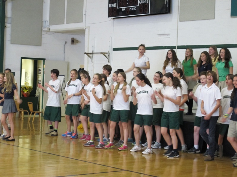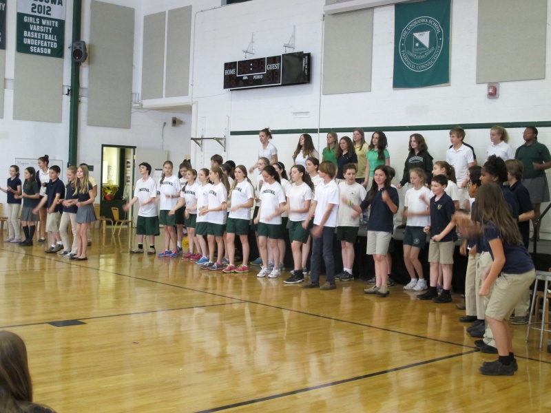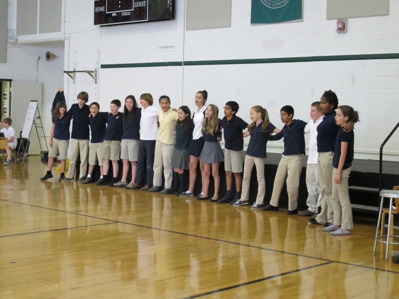 Posted by Megan KirkWhat a great show! The students in Chorus and Drama came together for a unit on Musical Theater. It all started in the classroom with lessons on the history of musical theater and what goes into making a musical – choreography, vocal techniques, acting, and so much more! Students then used improvisation to create different scenes for our Unquowa Musical. Using the information they had learned in class they then chose songs that would fit into their scenes. After learning the choreography and perfecting their lines and music, the students put on a short musical for their families and the school! It was a wonderful experience!