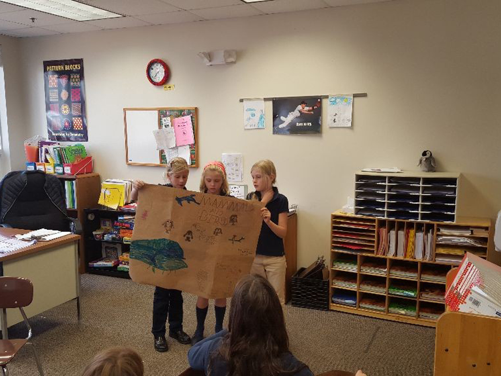 Posted by Carlene GordonThird graders took learning into their own hands. Student groups were each given a different topic within our study of animals to research and prepare a presentation for. After focused student collaboration and the creation of a visual component, third graders were ready to lead the class as teachers. Vocabulary, definitions and fun facts were presented on amphibians, fish, birds, and animal traits and behaviors. Congratulations on a great lesson, student-teachers!