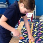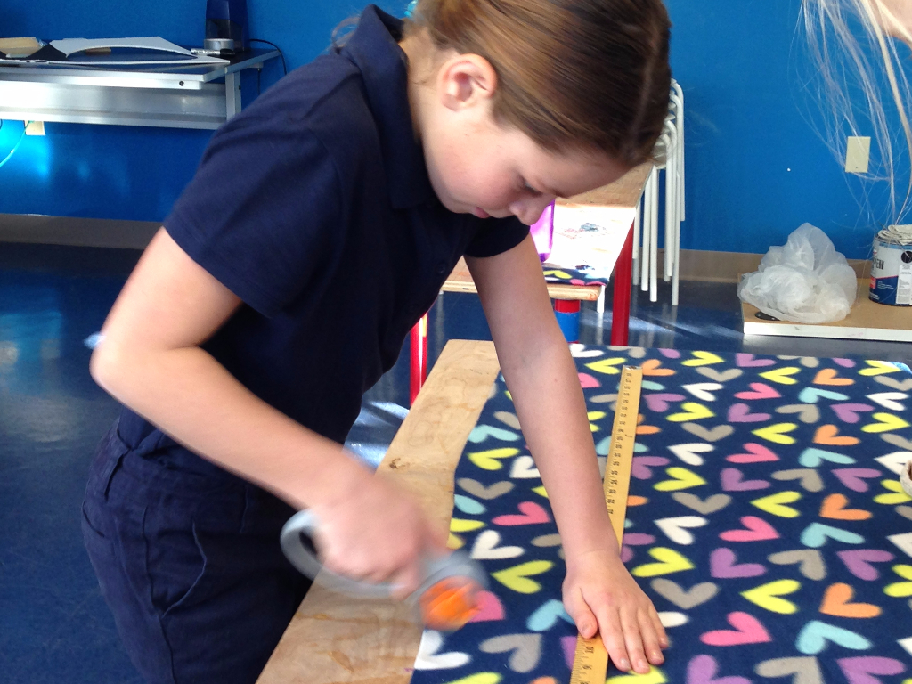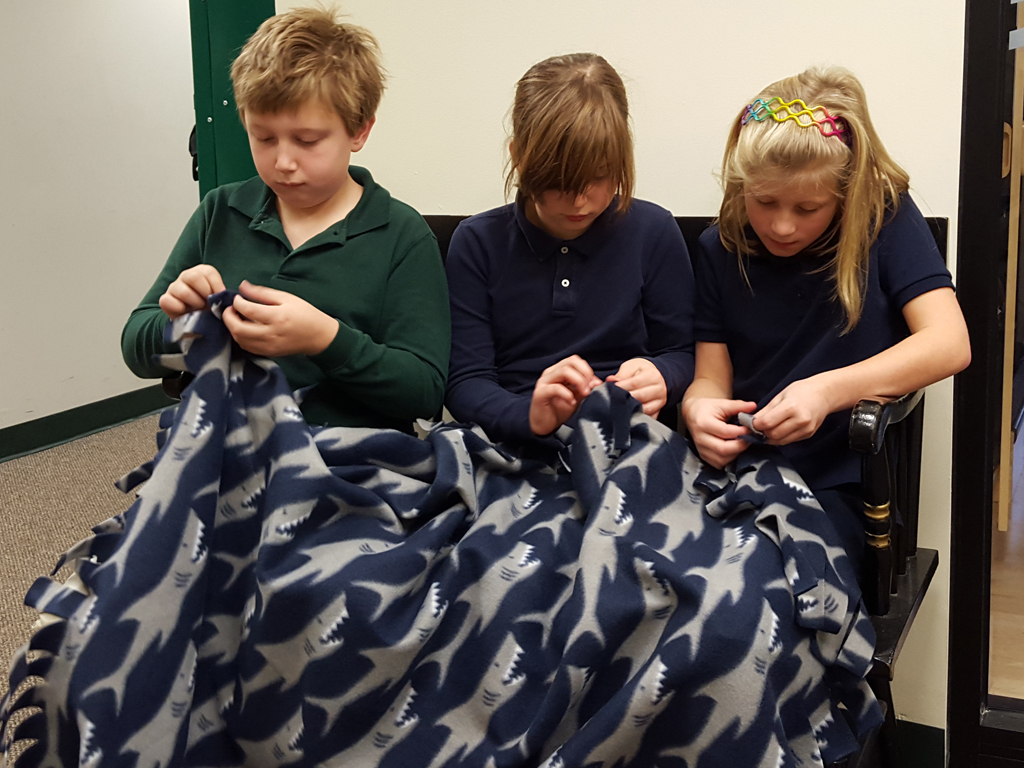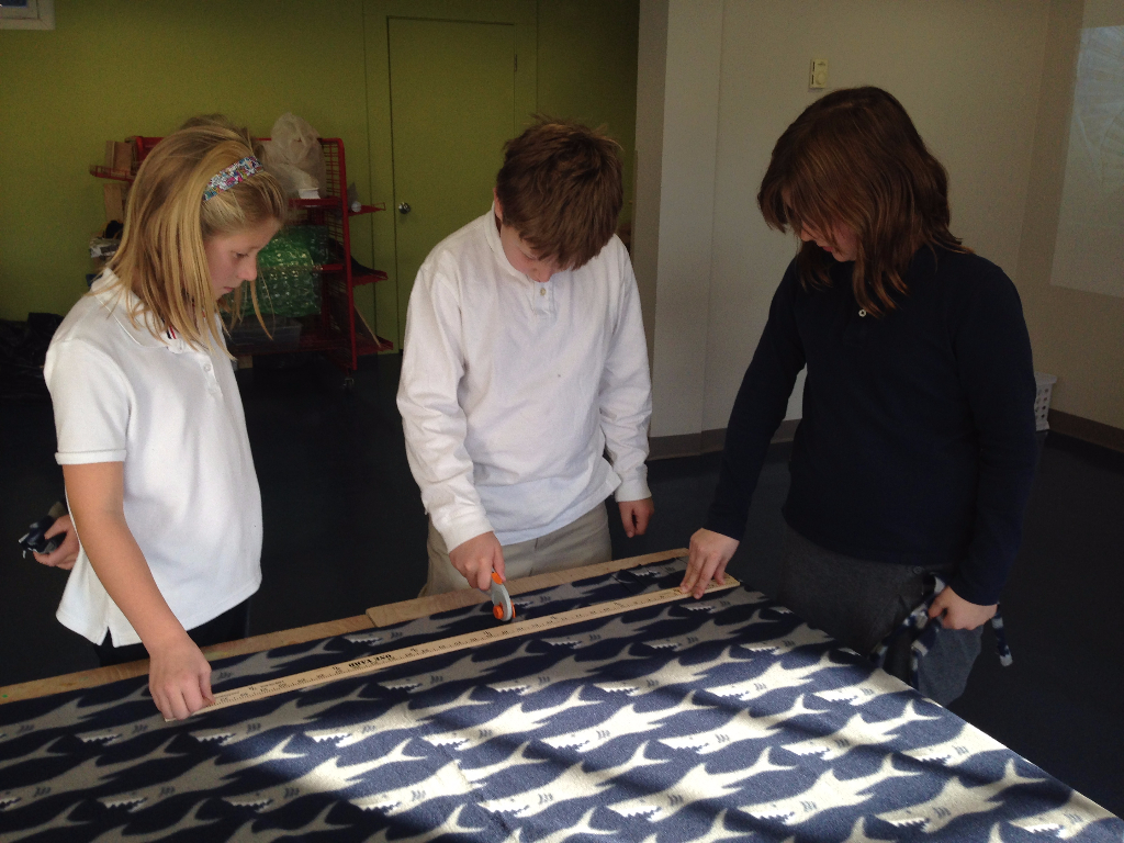 During a third grade Mindfulness activity, students shared memories of a special blanket. Third graders were asked to envision themselves wrapped up in a soft blanket while focusing on the sounds of their breathing and the calmness throughout their bodies. Students shared that a special blanket made them feel “loved,” “warm,” “comforted” and “peaceful.” Our students decided that all children should have this feeling and an idea was born! We decided to join Project Linus volunteers and make blankets for children in need. Soon our students were in the Unquowa Makerspace measuring, cutting and tying knots. In the end, we created nine blankets which were donated to the local Project Linus chapter coordinator from Danbury. We are honored to report that our blankets are scheduled to go to an overnight camp for children in need this coming summer.
