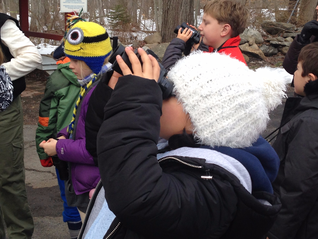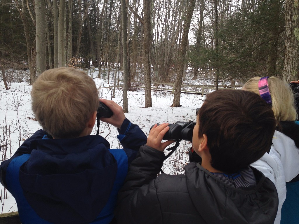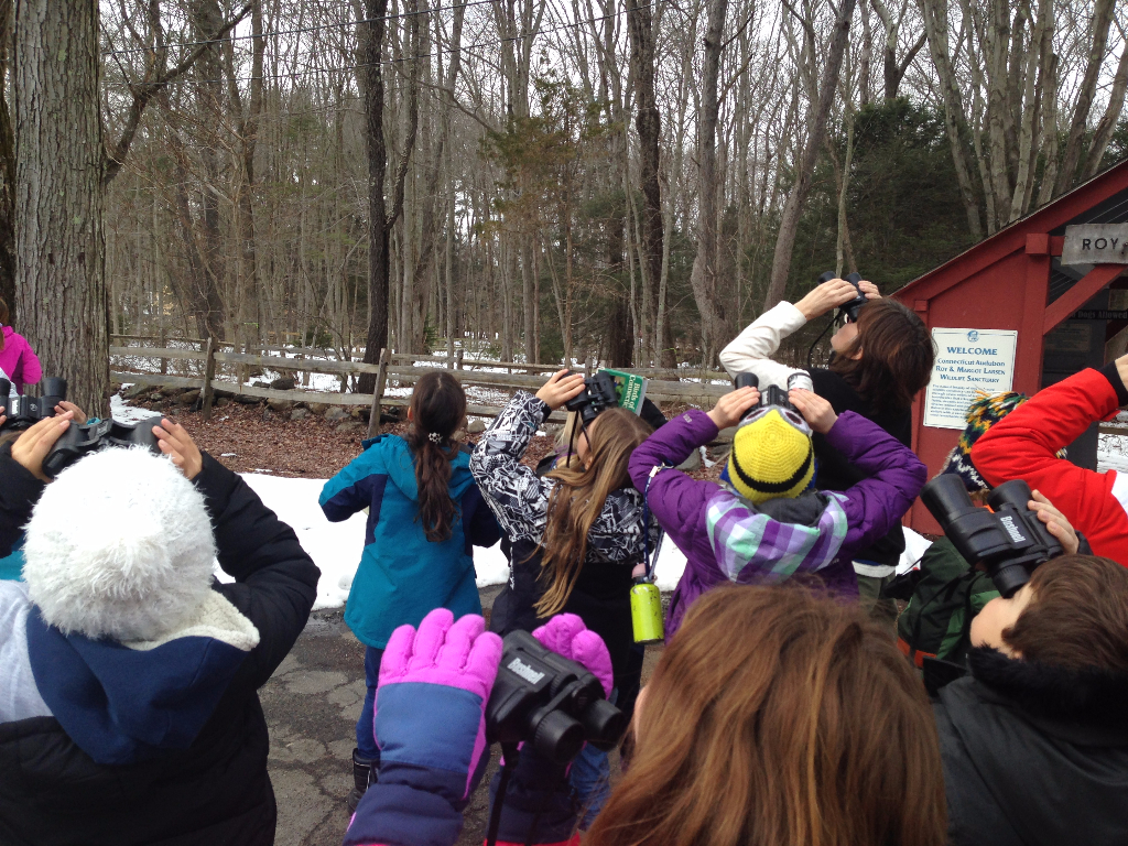 Posted by Carlene GordonThird graders recently spent a snowy afternoon at the Connecticut Audubon Bird Craft Museum. We were instructed on the proper use of binoculars and learned to use a field guide to identify various bird species. After watching many of the bird species from the windows, we headed outside to put our new skills to use. On a walk through the snow covered trails, we identified blue jays, dark-eyed junco, male and female cardinals and black-capped chickadees, to name a few. Our visit concluded inside by being introduced to some captive birds including an American kestral and a barn owl. We discovered that the Audubon takes these birds in after they heal from injuries which prevent them from being able to live in the wild.