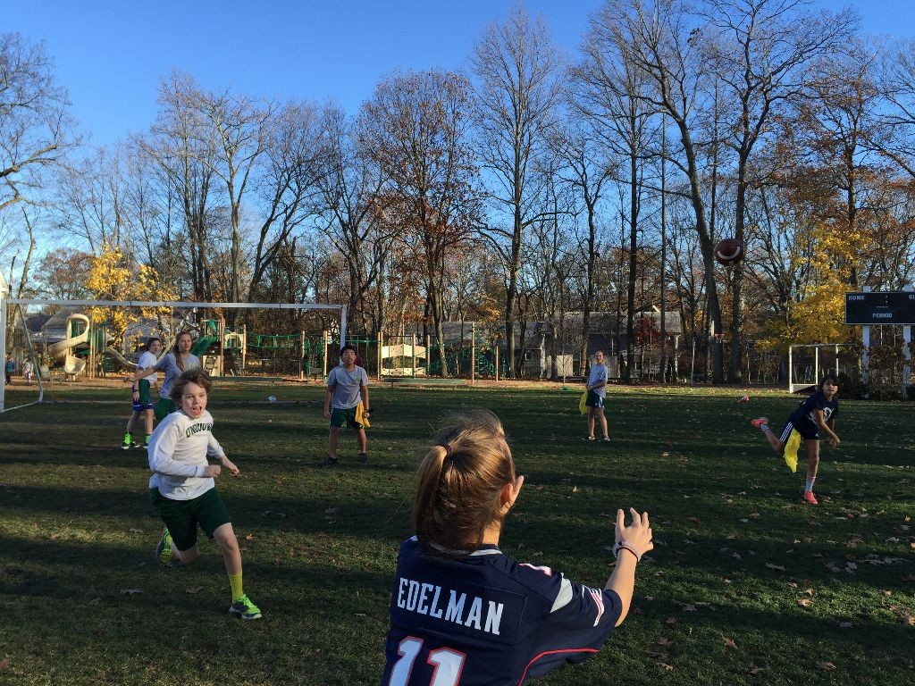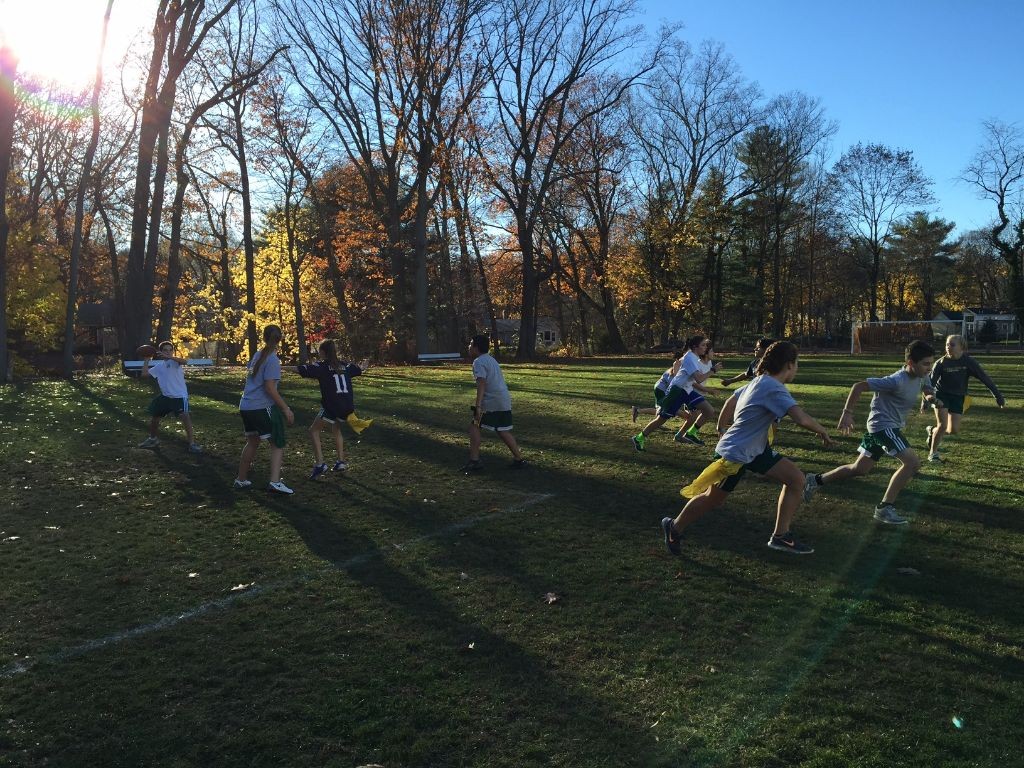 Posted by Sarah PollexHuddle! Hike! One Mississippi, two Mississippi, three Mississippi, four Mississippi! Great throw! Good try! Amazing catch! Run! You can do it! Grab her flag! These were sentiments overheard on the field during the last few weeks, as grades 6-8 came together to learn the game of flag football. Some techniques were mastered and other skills are yet to develop, but students played fair and supported one another which were the teachers’ measures of success.
