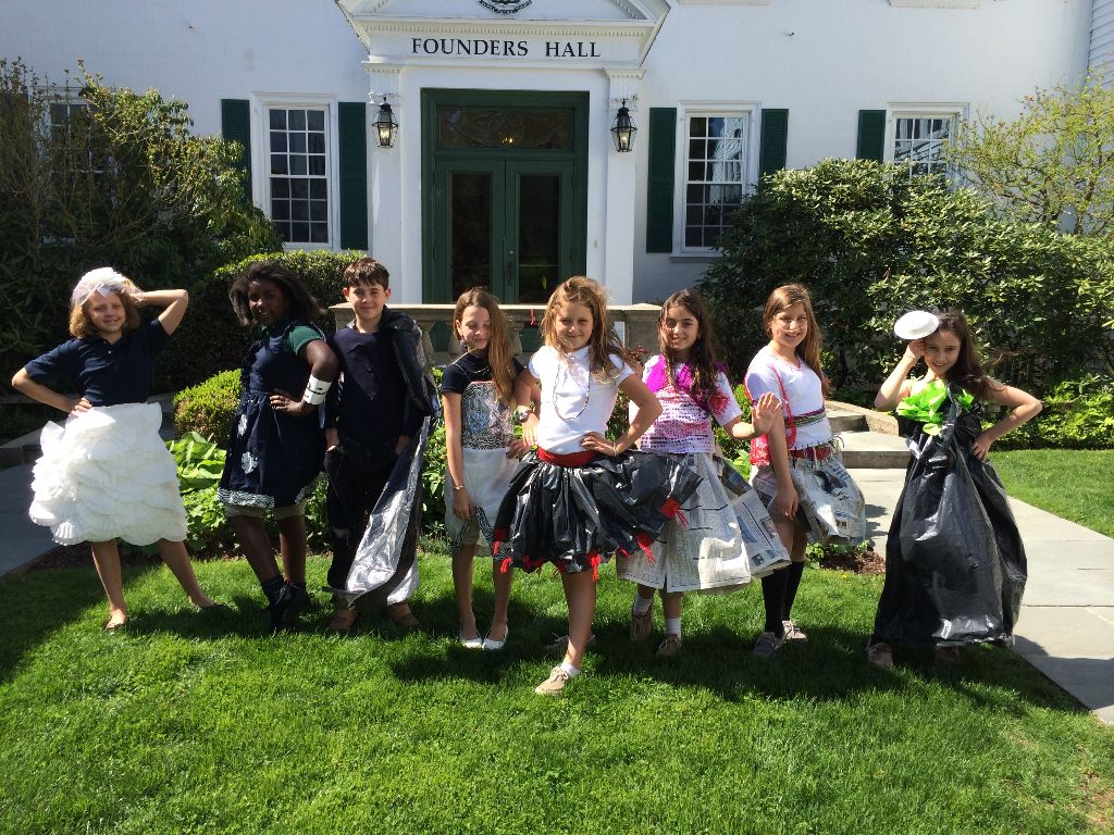 As part of our annual Art Show, the fourth grade class presented their fashion designs in the Unquowa Trashy Fashion Show. The show featured original designs created by the students using recycled materials such as garbage bags, coffee filters, newspapers, magazines and book covers.