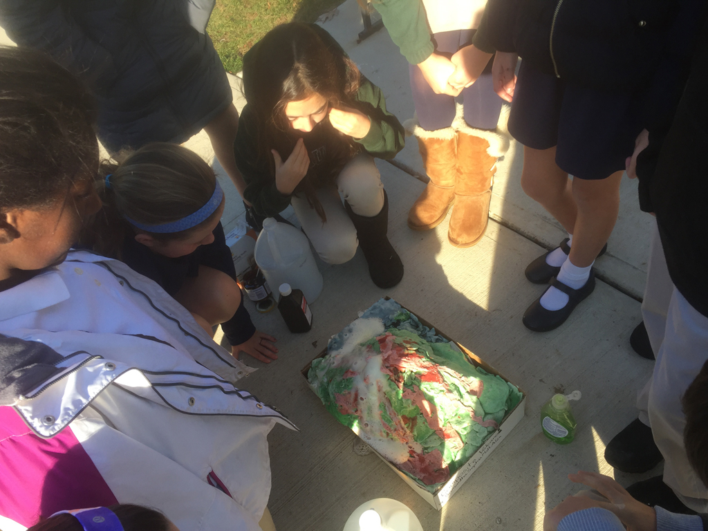 Posted by Craig KnebelThe sixth graders have been studying plate tectonics and the causes of most volcanoes, earthquakes and tsunamis due to the movement of crashing plates. In addition to modeling Tsunamis in the makerspace, the students crafted salty dough models of shield, cone and composite volcanoes. We went outside to let them “erupt.”