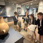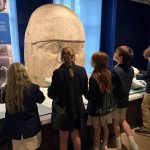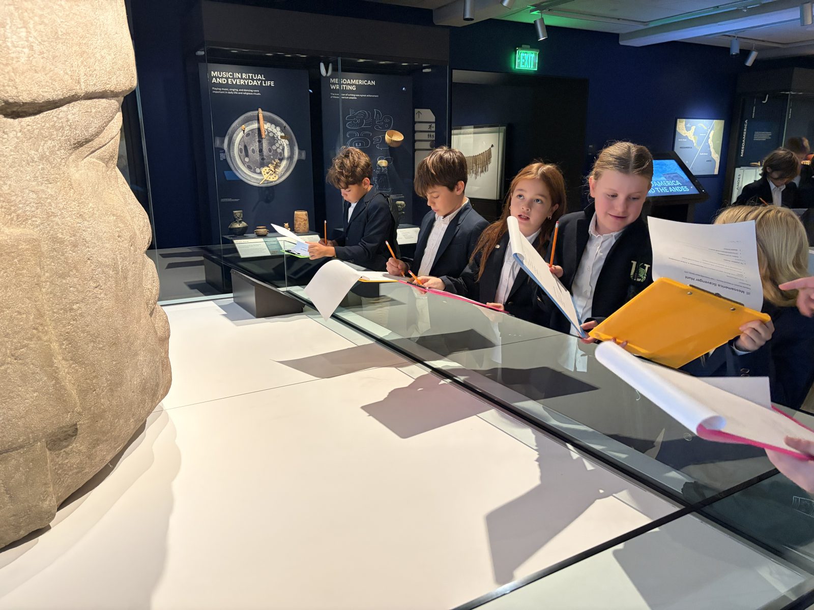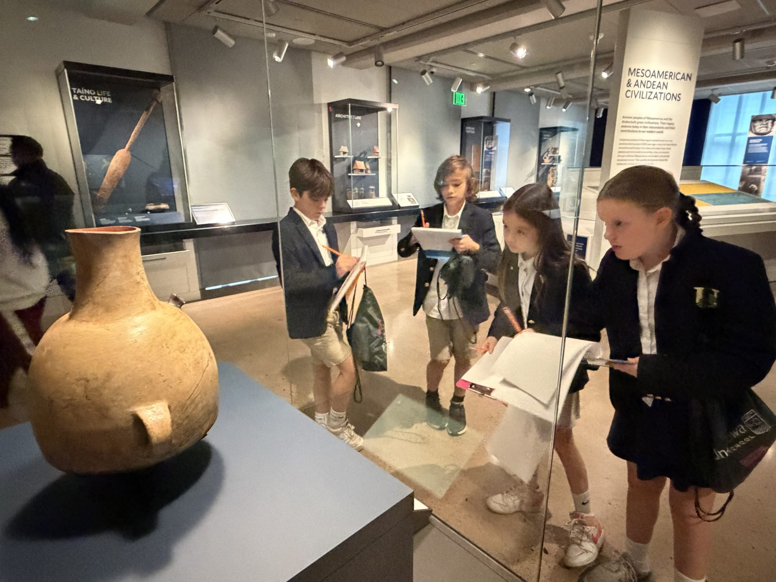 Posted by Sarah RaggioRecently, the fifth and sixth graders set out for a field experience at the Peabody Museum in New Haven. When we got to the museum, we split up and the fifth grade went straight to the Mesoamerican exhibit on the second floor. We immediately saw a colossal Olmec head! This is one of the civilizations we talked about in class and we had only seen pictures of their sculptures. After that, we attempted to complete a scavenger hunt of Mesoamerican artifacts that our teacher Mrs. Raggio had provided. We saw things like cups, bowls, and one thing that really surprised us was a vase with a scene on it. The scene was a group of people playing with a rubber ball. That surprised us because we didn’t know that they knew about rubber back then.