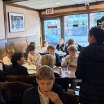 As we started to leave, we met up with the sixth graders who were exploring the dinosaur section, so we joined in! We saw skeletons of wooly mammoths and other dinosaurs. One of the skeletons we saw was Lucy, the early hominid. We will learn more about that next year! On the way back to school, we stopped at Modern Apizza to eat some world famous New Haven pizza. It was so good! The trip was both educational and fun!