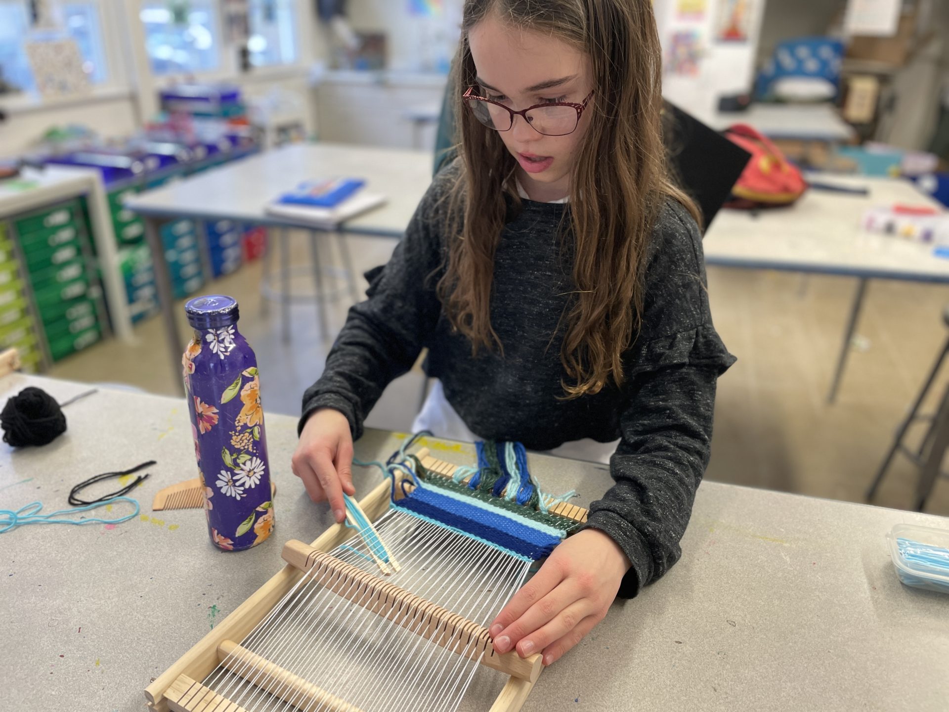 Posted by Krissy PondenAfter finishing our stop motion animation unit in Visual Arts, the sixth grade has begun weaving on table top looms. They are learning how to make tassels and weave using a shuttle, which allows them to focus more on the design rather than the mechanics of the process. It is a fun and relaxing experience that the students look forward to!