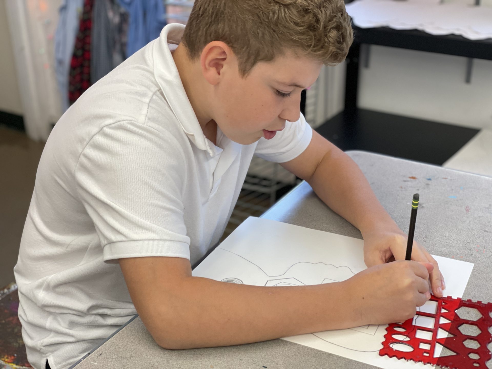 Posted by Krissy PondenVisual arts projects typically begin with an in-depth exploration of essential questions and historical/contemporary context before students begin studio time. Sixth graders have been considering how shapes and colors can represent aspects of their personality as well as whether they are the same person on the inside as they present to the world on the outside. Seventh graders looked into how art and math are related and why and how artists would choose to use technological processes to create artwork. Eighth graders researched how radial balance has been used by many different cultures throughout history and why such symmetry is seen as spiritually significant.