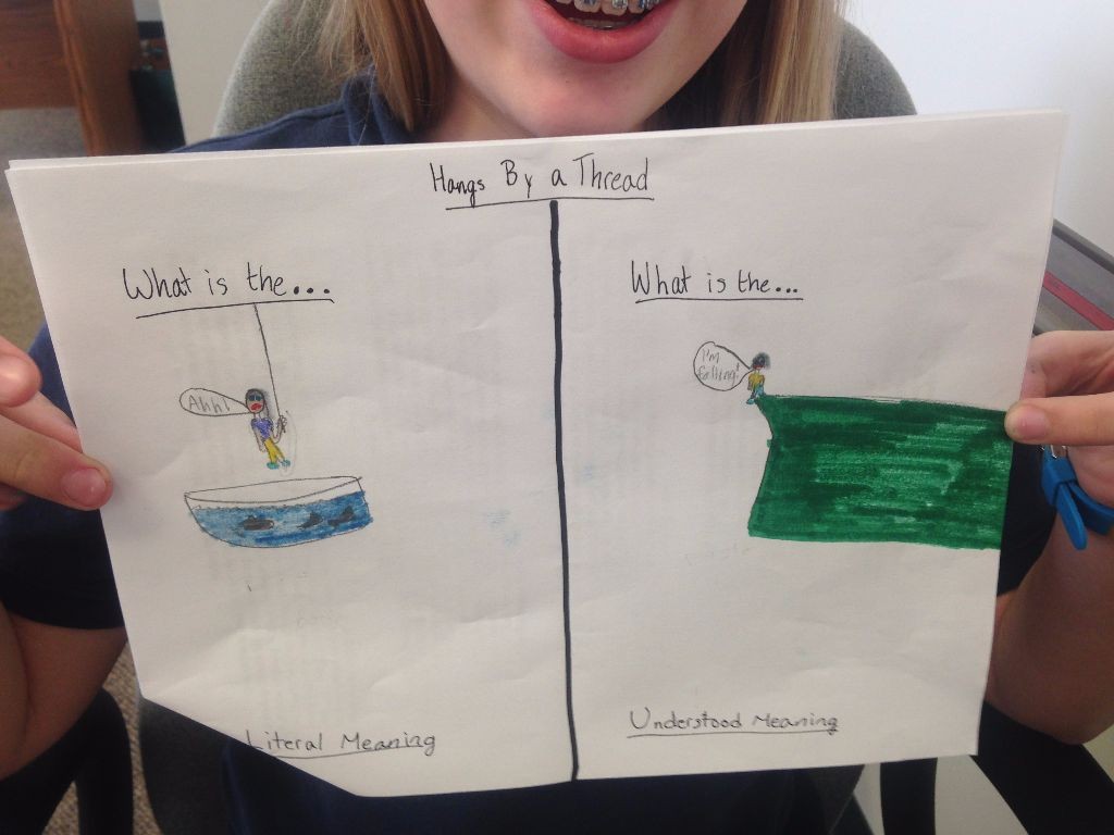 Everyone chose three idioms from the novel and illustrated to humorous effect the different literal and understood meanings of each. Take a look!