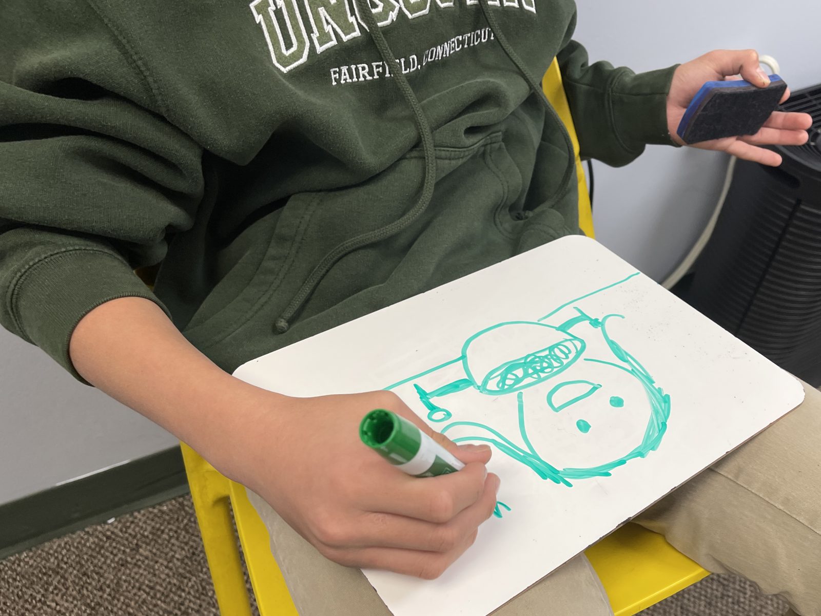 Posted by Carina BlackwellIn 8th Mandarin, students were practicing their reading skills. However, this time students illustrated by drawing pictures on the mini whiteboard to show their comprehension. Everyone became competitive and tried very hard to show their best drawing. In this class, I found every student’s other talent. I can’t pick a winner because you all are good at drawing!