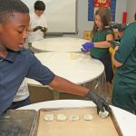 Posted by Carina BlackwellIt’s that time of the year again! Our Mandarin 3-8 students worked hard to make mooncakes for the entire school for a special lunch dessert. In mainland China, the Mid-Autumn Festival represents the reunion of families and it is tradition for families to dine together that night. After a feast dinner, mooncakes will be served as dessert. We are grateful to share this culture with our Mandarin learners. We hope everyone enjoyed mooncakes at lunch. Zhōng Qiū Jié Kuài Lè – Happy Mid-Autumn Festival!