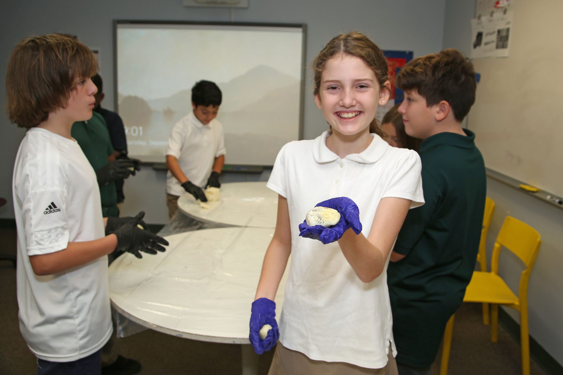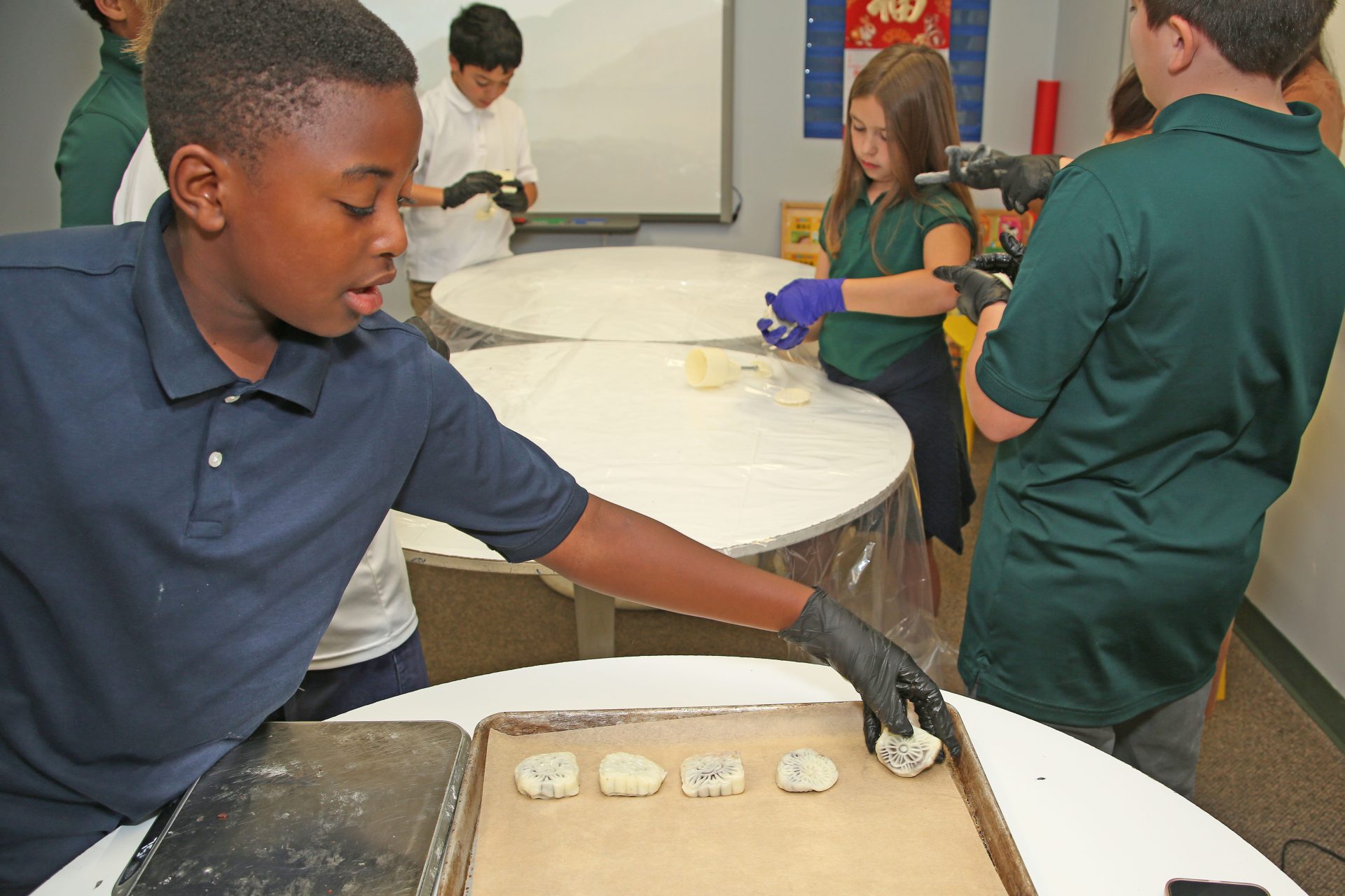 Posted by Carina BlackwellIt’s that time of the year again! Our Mandarin 3-8 students worked hard to make mooncakes for the entire school for a special lunch dessert. In mainland China, the Mid-Autumn Festival represents the reunion of families and it is tradition for families to dine together that night. After a feast dinner, mooncakes will be served as dessert. We are grateful to share this culture with our Mandarin learners. We hope everyone enjoyed mooncakes at lunch. Zhōng Qiū Jié Kuài Lè – Happy Mid-Autumn Festival!